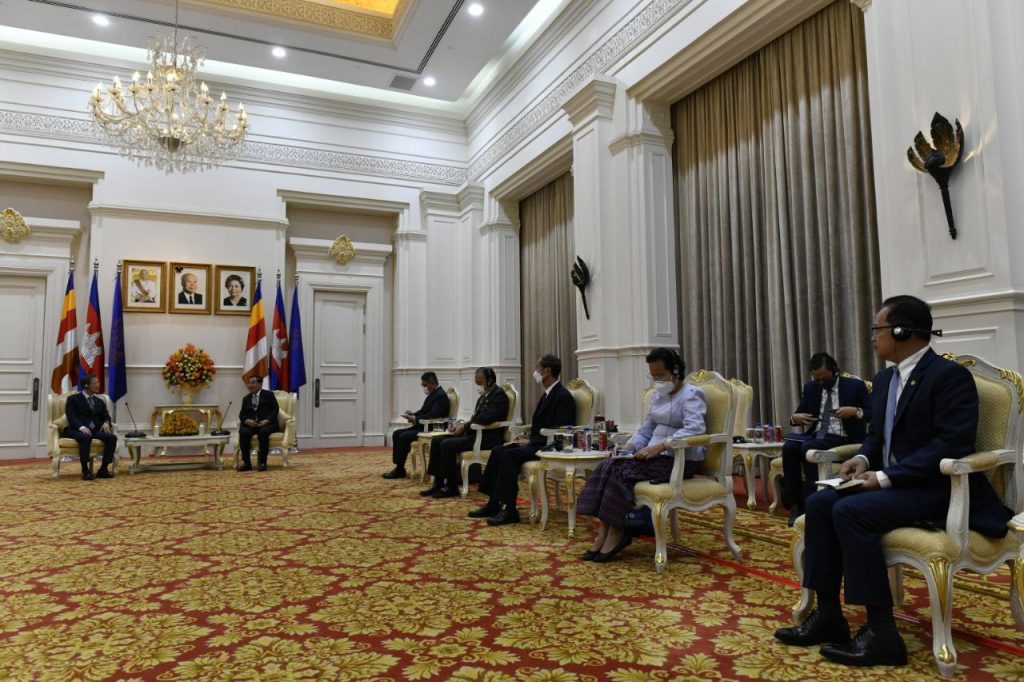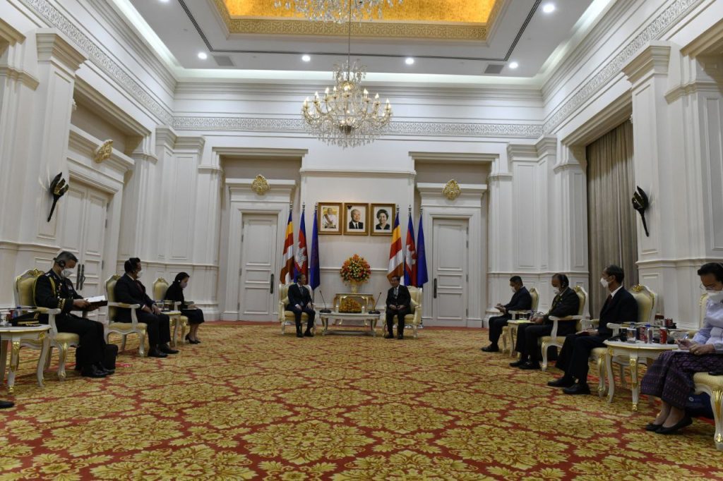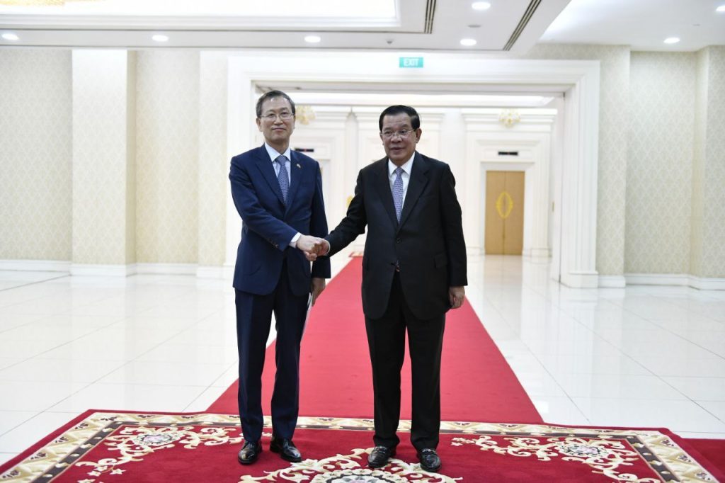 ការគាំទ្ររបស់សម្ដេចអគ្គមហាសេនាបតីតេជោ ហ៊ុន សែន នាយករដ្ឋមន្ត្រីនៃព្រះរាជាណាចក្រកម្ពុជា ក្នុងឱកាសអនុញ្ញាតឲ្យឯកឧត្តម PARK Heung-Kyeong ឯកអគ្គរដ្ឋទូតសាធារណរដ្ឋកូរ៉េ ចប់អាណត្តិប្រចាំនៅកម្ពុជា ចូលជួបសំដែងការគួរសម និងជម្រាបលា នៅវិមានសន្តិភាព នារសៀលថ្ងៃទី១៩ ខែធ្នូ ឆ្នាំ២០២២ ។
