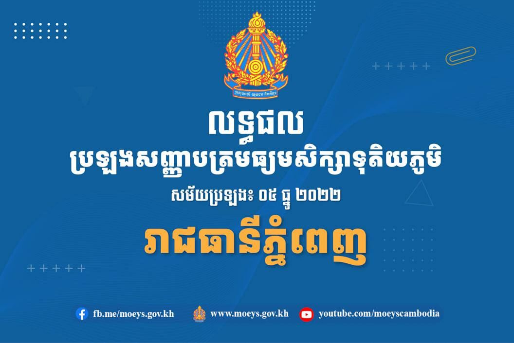 សូមជម្រាបថា ការប្រឡងសញ្ញាបត្រមធ្យមសិក្សាទុតិយ ភូមិ ប្រព្រឹត្តឡើងរយៈពេលពីរថ្ងៃគឺថ្ងៃទី ៥-៦ ខែធ្នូ ឆ្នាំ ២០២២ ដោយមានបេក្ខជនអវត្តមានចំនួន ២ ៤០០នាក់ ក្នុង ចំណោម បេក្ខជនដែលមានឈ្មោះប្រឡងសរុបចំនួន ១២៨ ១៣៥ នាក់ ៕