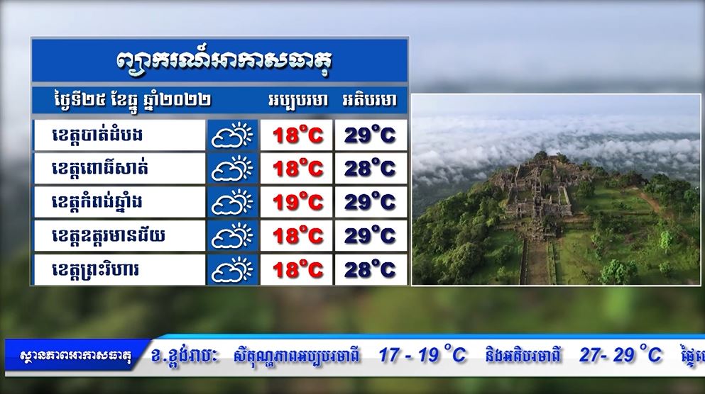 ព្យាករណ៌អាកាសធាតុ សម្រាប់ថ្ងៃទី២៥ ធ្នូ ២០២២ (មានវីដេអូ)