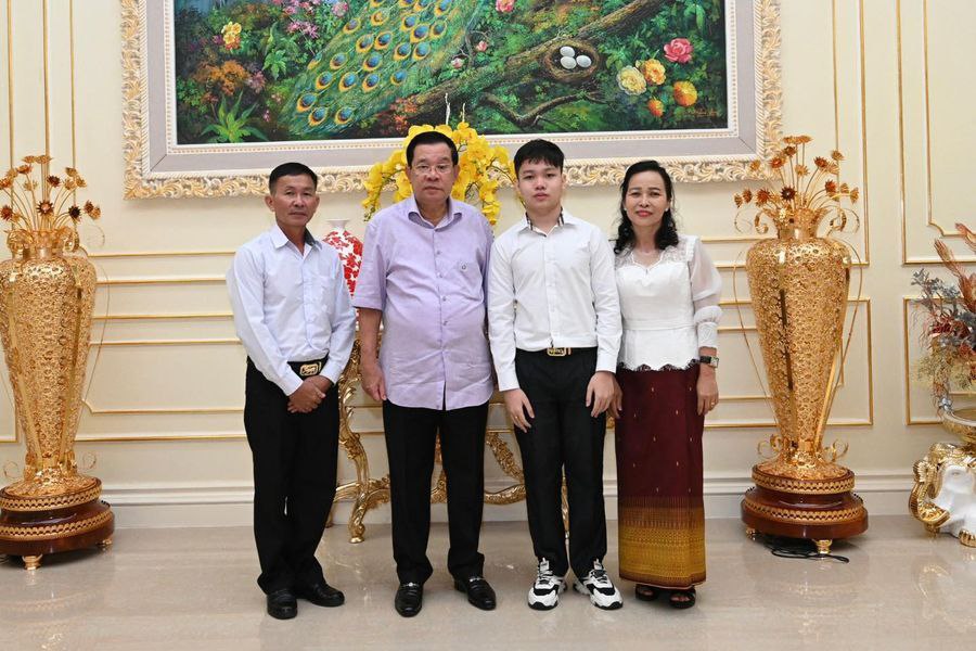 ភ្នំពេញ៖ សម្តេចអគ្គមហាសេនាបតីតេជោ ហ៊ុន សែន នាយករដ្ឋមន្ត្រីកម្ពុជា នៅល្ងាចថ្ងៃសៅរ៍ ទី២៤ ខែធ្នូ ឆ្នាំ២០២២ បានឆ្លៀតជួបអបអរសាទរកុមារា ទៀង គឹមហុង បេក្ខជនបាក់ឌុបក្មេងជាងគេ ជាមួយការប្រកាសជួយឱ្យកុមារារូបនេះសិក្សា ចប់បណ្ឌិតផ្នែកវិទ្យាសាស្ត្រ។