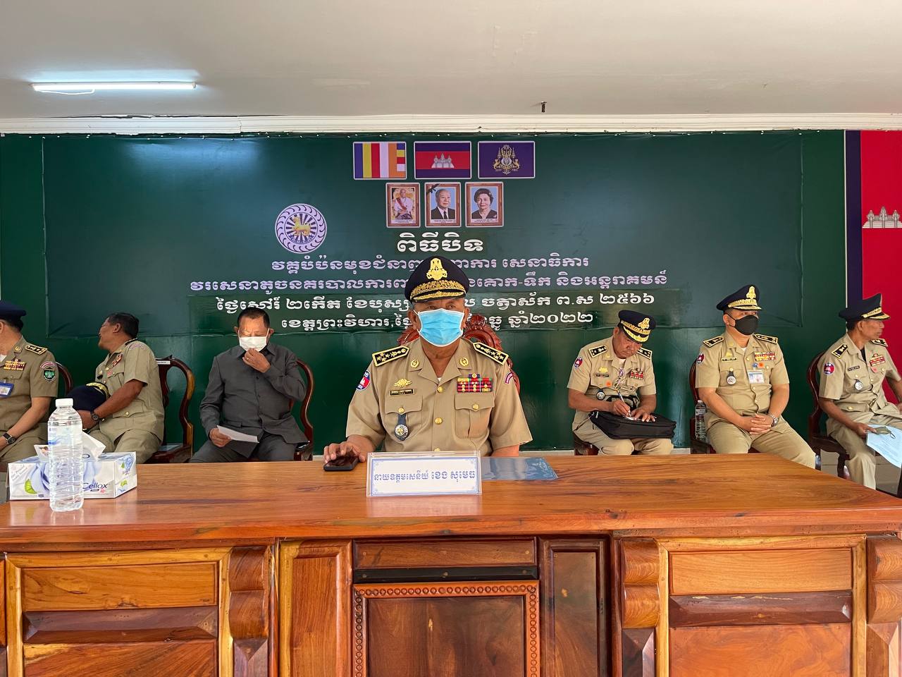 ព្រះវិហារ ៖ សិក្ខាកាមចំនួន ៧៥នាក់ បានបញ្ចប់វគ្គបំប៉នមុខជំនាញ បញ្ជាការ សេនាធិការ វរសេនាតូច នគរបាលការពារព្រំដែនគោក-ទឹក និងវរសេនាតូចនគរបាលអន្តរាគមន៍ ប្រចាំឆ្នាំ២០២២ ប្រកបដោយជោគជ័យ ។ នេះបើតាមការឱ្យដឹងពី លោកឧត្តមសេនីយ៍ឯក វូ ហាក់ ប្រធាននាយកដ្ឋាននគរបាលបច្ចេកទេសព្រំដែន ក្នុងពិធីបិទវគ្គ កាលពីថ្ងៃទី២៤ ខែធ្នូ ឆ្នាំ២០២២ ។