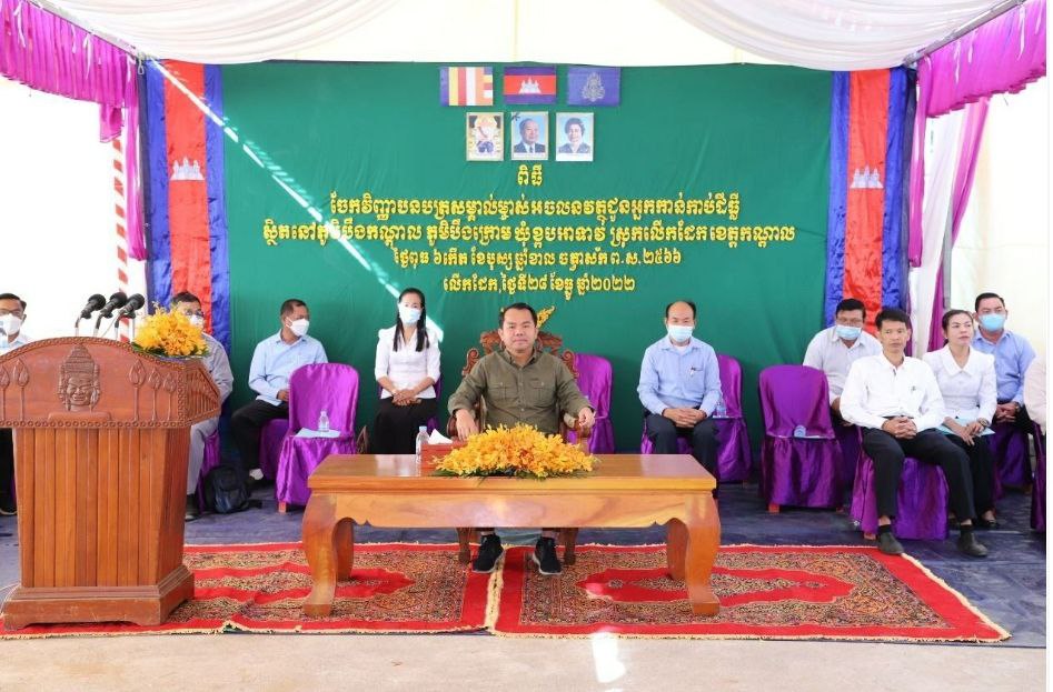 ខេត្តកណ្តាល៖ ឯកឧត្តម គង់ សោភ័ណ្ឌ អភិបាល នៃគណៈអភិបាលខេត្តកណ្ដាល បានអញ្ជើញចូលរួមក្នុងពិធីចែកវិញ្ញាបនបត្រសម្គាល់ម្ចាស់អចលវត្ថុចំនួន ១,០៩០ប័ណ្ណ នៅភូមិបឹងក្រោម និងភូមិបឹងកណ្ដាល និងឃុំខ្ពបអាទាវ ស្រុកលើកដែក កាលពីថ្ងៃទី២៨ ខែធ្នូ ឆ្នាំ២០២២ ។