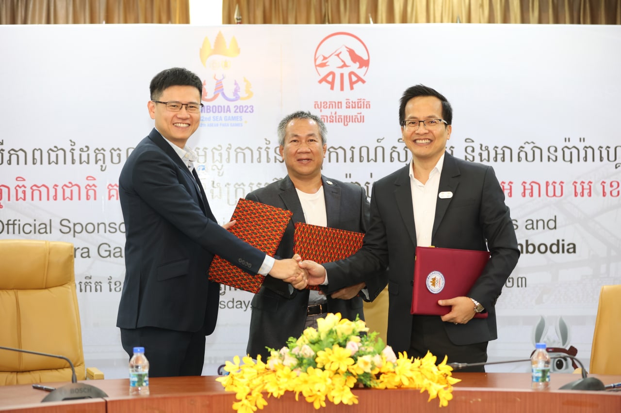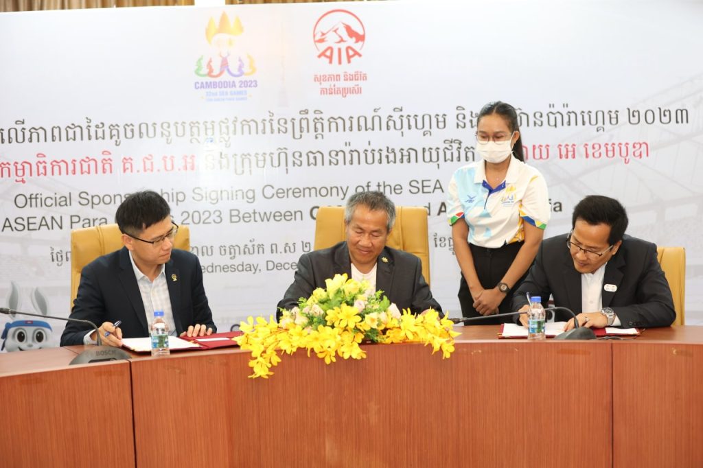 ភ្នំពេញ៖ គណៈកម្មាធិការជាតិរៀបចំការប្រកួតកីឡាស៊ីហ្គេម លើកទី៣២ ( CAMSOC) និងក្រុមហ៊ុនធានារ៉ាប់រងអាយុជីវិត AIA CAMBODIA បានចុះហត្ថលេខាលើភាពជាដៃគូចលនូបត្ថម្ភជាផ្លូវការ សម្រាប់ការប្រកួតកីឡាស៊ីហ្គេម និងអាស៊ានប៉ារ៉ាហ្គេម ២០២៣ដែលជាប្រវត្តិសាស្ត្រដំបូងរបស់កម្ពុជា ក្រោយរង់ចាំអស់រយៈពេល៦៤ឆ្នាំ។