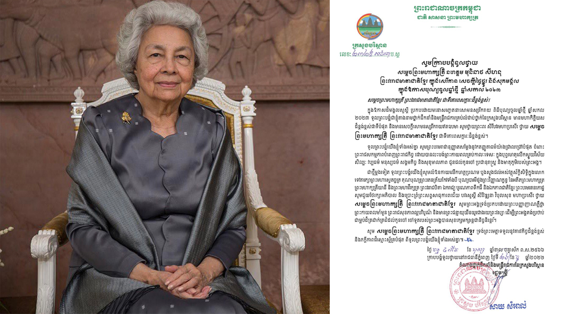 ឯកឧត្តម សាយ សំអាល់ សូមក្រាបបង្គំទូលថ្វាយព្រះពរសម្តេចព្រះមហាក្សត្រី នរោត្តម មុនិនាថ សីហនុ ក្នុងឱកាសបុណ្យចូលឆ្នាំថ្មី ឆ្នាំសកល២០២៣