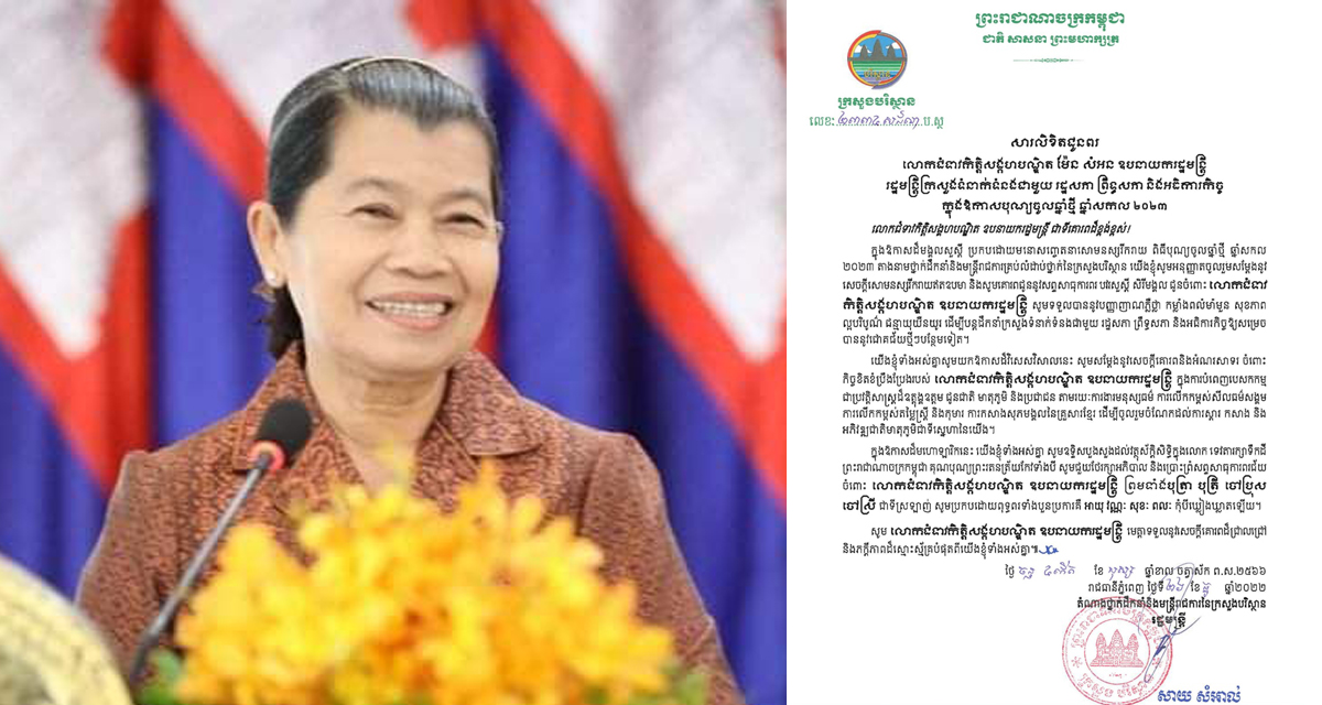 ឯកឧត្តម សាយ សំអាល់ ផ្ញើសារលិខិតជូនពរលោកជំទាវកិត្តិសង្គហបណ្ឌិត ម៉ែន សំអន ក្នុងឱកាសបុណ្យចូលឆ្នាំថ្មី ឆ្នាំសកល២០២៣