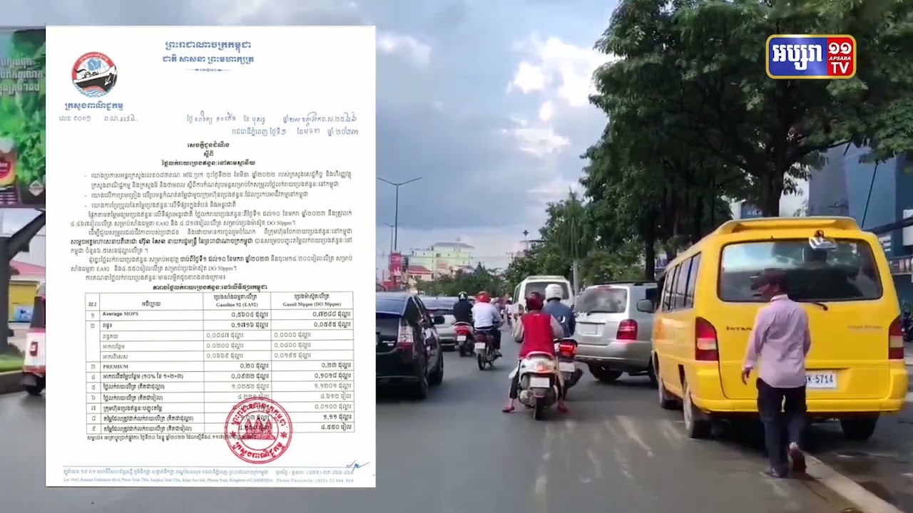 យោងតាមក្រសួងពាណិជ្ជកម្ម តម្លៃប្រេងឥន្ធនៈ សម្រាប់ការលក់ រវាងពីថ្ងៃទី០១ ខែមករា រហូតដល់ថ្ងៃទី១០ ខែមករា ឆ្នាំ២០២៣ គឺប្រេងសាំងធម្មតា មានតម្លៃ៤ពាន់ ២០០រៀលក្នុង ១លីត្រ ដែលតម្លៃនេះ គឺកើនឡើងចំនួន១៥០ រៀល បើធៀបទៅការលក់រយៈពេល១០ថ្ងៃ មុន…ចំណែក ប្រេងម៉ាស៊ូតមានតម្លៃ ចំនួន៤ពាន់៥៥០រៀល ក្នុង១លីត្រ ដែលតម្លែនេះ បានកើនឡើងចំនួន៥០រៀល បើធៀបទៅនឹងការ លក់រយៈពេល១០ថ្ងៃមុន។
