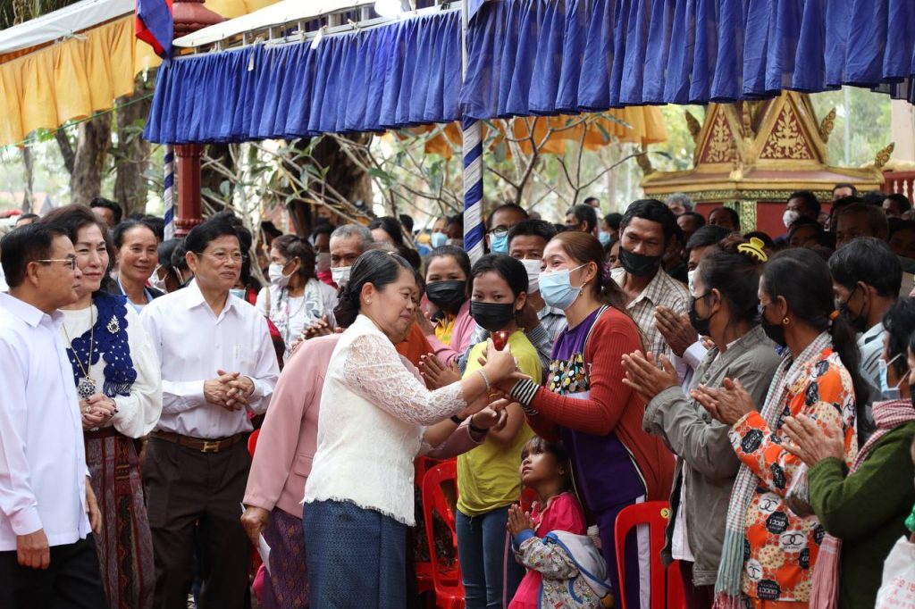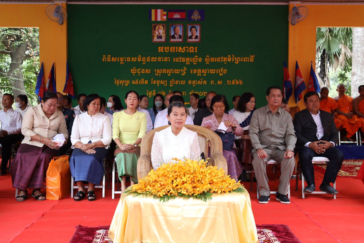 ខេត្ដស្វាយរៀង ៖ លោកជំទាវកិត្តិសង្គហបណ្ឌិត ម៉ែន សំអន ឧបនាយករដ្ឋមន្រ្ដី រដ្ឋមន្រ្ដី ក្រសួងទំនាក់ទំនងជាមួយរដ្ឋសភា-ព្រឹទ្ធសភា និងអធិការកិច្ច បានអញ្ជេីញជាអធិបតីក្នុងពិធីសម្ពោធផ្លូវ១ខ្សែ ស្រះទឹក កុដិ ដំបូលសាលាឆាន់ និងវេទិការកិត្តិយស ដែលចំណាយថវិកាសាងសង់អស់ ៣៧១.៥៧០ដុល្លារ នៅវត្តល្ងើន ស្ថិតនៅភូមិព្រៃពោធិ៍ ឃុំដូនស ស្រុកស្វាយជ្រំ ខេត្ដស្វាយរៀង នាព្រឹកថ្ងៃទី០៦ ខែមករា ឆ្នាំ២០២៣ ។
