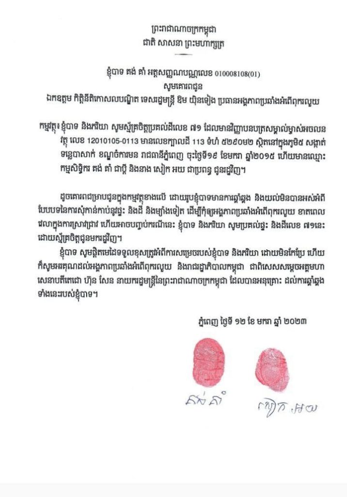 ដីនិងផ្ទះដែល គង់ គាំ រៀបចំឯកសារបន្លំយកនេះ គឺជាកម្មសិទ្ធិរបស់ក្រសួងការបរទេស ហើយដី និងផ្ទះនេះ នឹងមិនត្រូវបាត់បង់ទៅណាឡើយ ដោយត្រូវយកមកវិញ តាមគ្រប់មធ្យោបាយដោយអនុវត្តទៅតាមនីតិវិធីច្បាប់ជាធរមាន ៕ ដោយ វណ្ណលុក