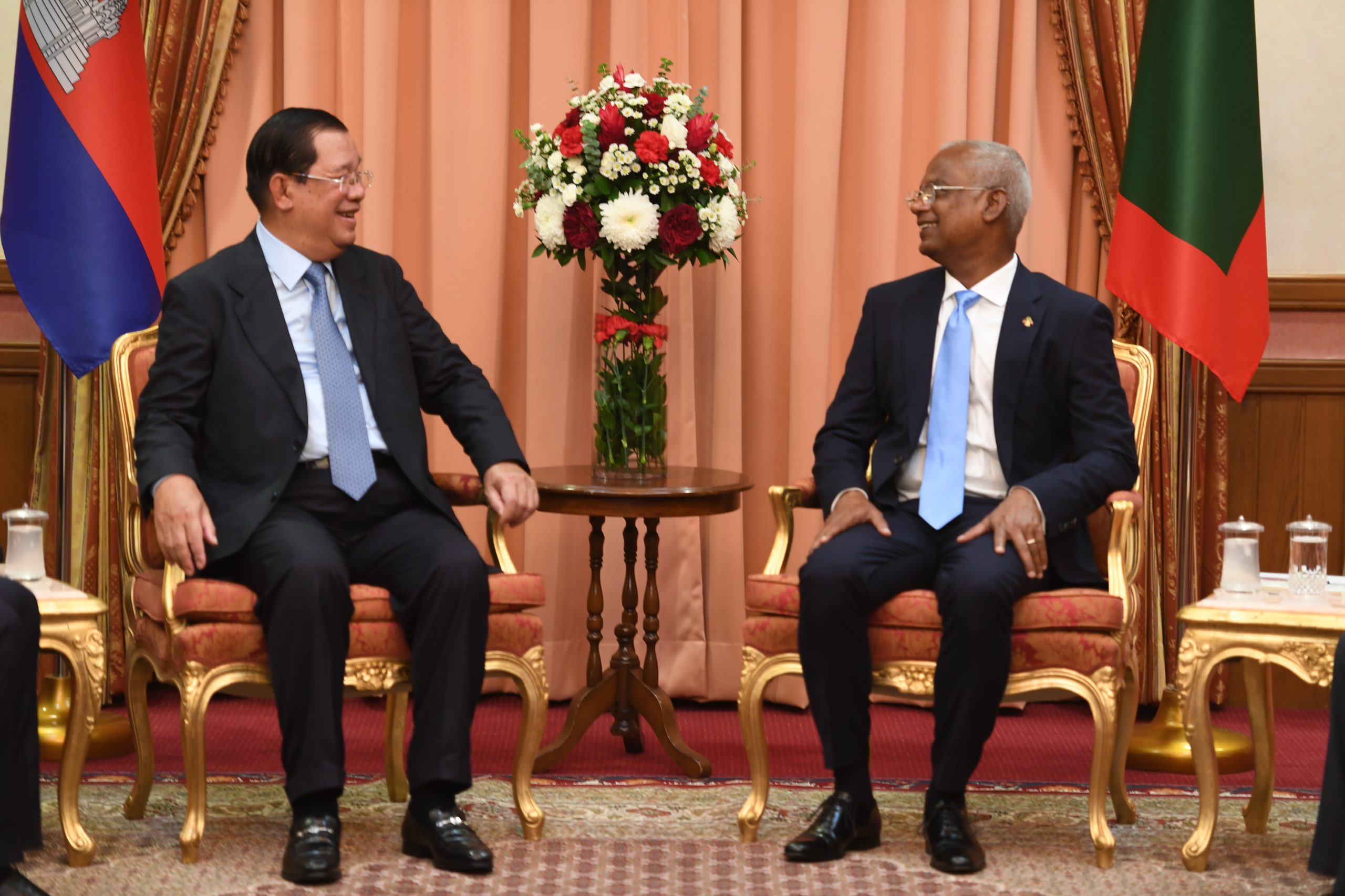 ប្រមុខរាជរដ្ឋាភិបាលកម្ពុជា ត្រូវបានទទួលបដិសណ្ឋារកិច្ចខ្ពស់ ពីប្រធានាធិបតីម៉ាល់ឌីវ និងបានអញ្ជើញជាអធិបតីក្នុងពិធីចុះហត្ថលេខា លើពិធីសារចំនួន៦