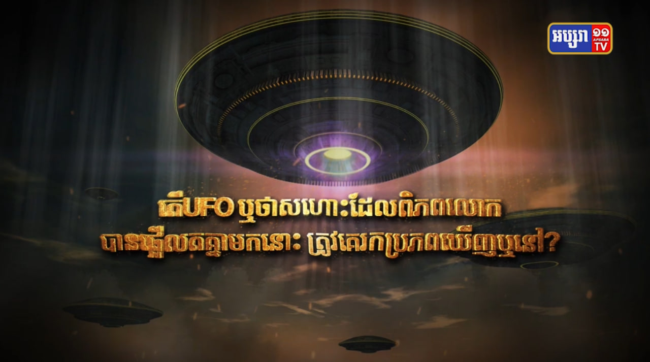 UFO គឺជាពាក្យពេញនៃអក្សរ Unidentified Flying Object មានន័យថាវត្ថុហោះហើរដែលគេ មិនស្គាល់អត្តសញ្ញាណ។ ពលរដ្ឋខ្មែរជាទូទៅស្គាល់ថា «ថាសហោះ»។ រឿង «ថាសហោះ» គឺជារឿងអាថ៌កំបាំងដែលមិនទាន់មានការបកស្រាយណាមួយច្បាស់លាស់ពីក្រុមអ្នកវិទ្យាសាស្ត្រអាចបញ្ជាក់ថា តើមានប្រភពមកពីណា និងអ្នកណាជាអ្នកបង្កើតវានោះទេ។ រឿង «UFO ថាសហោះនេះ នៅតែស្ថិតក្នុងការចង់ដឹងជានិច្ចពីប្រជាជនទូទៅ ដែលថ្ងៃនេះ កម្មវិធីអប្សរាណិត សូមធ្វើសេចក្តីរាយការណ៍ខ្លះពាក់ព័ន្ធនឹងរឿង UFO ថាសហោះ ដែលមានខ្លឹមសារដូចតទៅនេះ