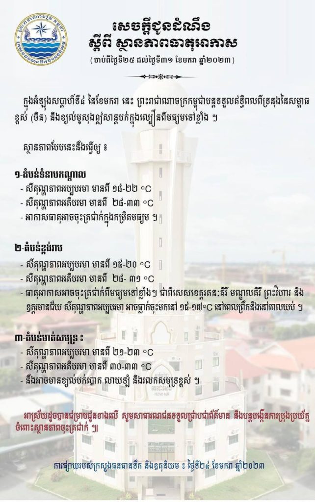 ស្ថានភាពធាតុអាកាស ២៥-៣១ មករាOne-Minuteអត្ថបទដោយ៖AMS OneMinute #ams1minute AMS OneMinuteអត្ថបទមុនអត្ថបទបន្ទាប់