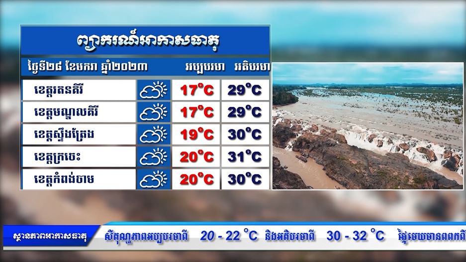 ព្យាករណ៌អាកាសធាតុ សម្រាប់ថ្ងៃទី២៨ មករា ២០២២ (មានវីដេអូ)