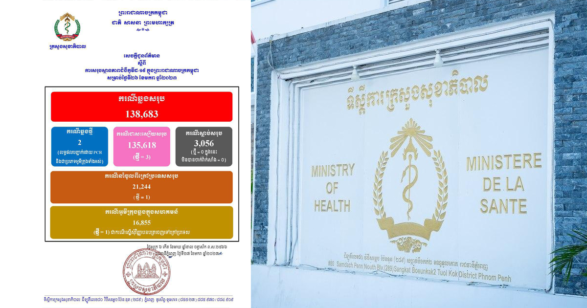 ករណីឆ្លងកូវីដ-១៩នៅថ្ងៃនេះ ៖ អ្នកឆ្លងថ្មី ០២នាក់ , អ្នក ជាសះស្បើយ ០៣នាក់ និងគ្មាន អ្នកជំងឺស្លាប់