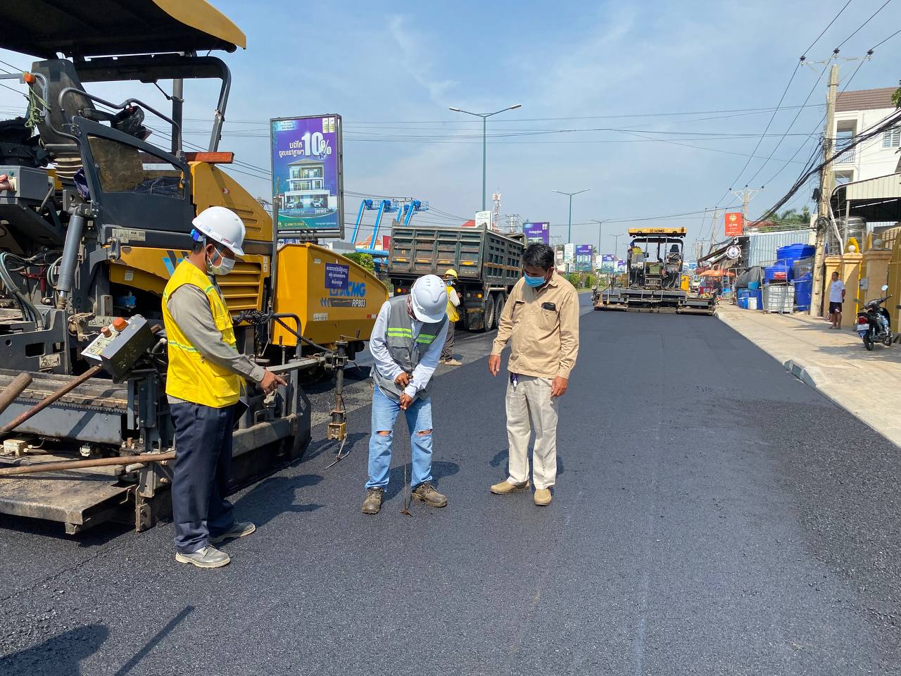 មន្ត្រីជំនាញ ចុះពិនិត្យលក្ខណៈបច្ចេកទេស នៃការអ៊ុតកៅស៊ូ លើបណ្តោយផ្លូវជាតិលេខ៦A ទាំងកំដៅនិងកម្រាស់