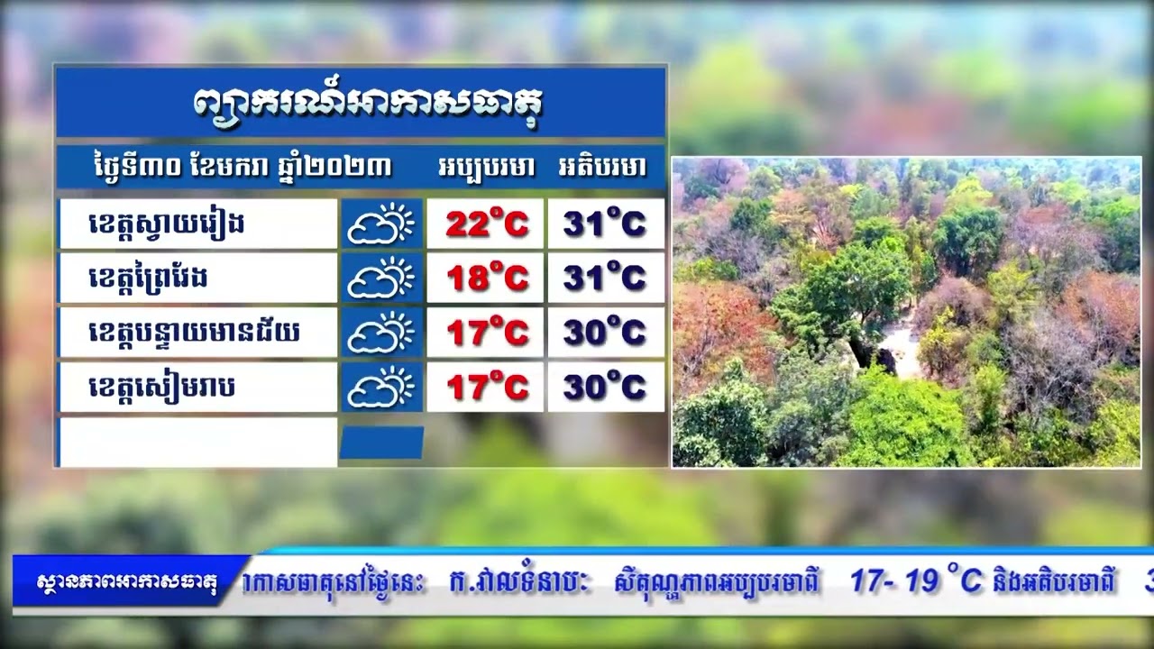 ព្យាករណ៌អាកាសធាតុ សម្រាប់ថ្ងៃទី២៩ មករា ឆ្នាំ២០២៣ (មានវីដេអូ)