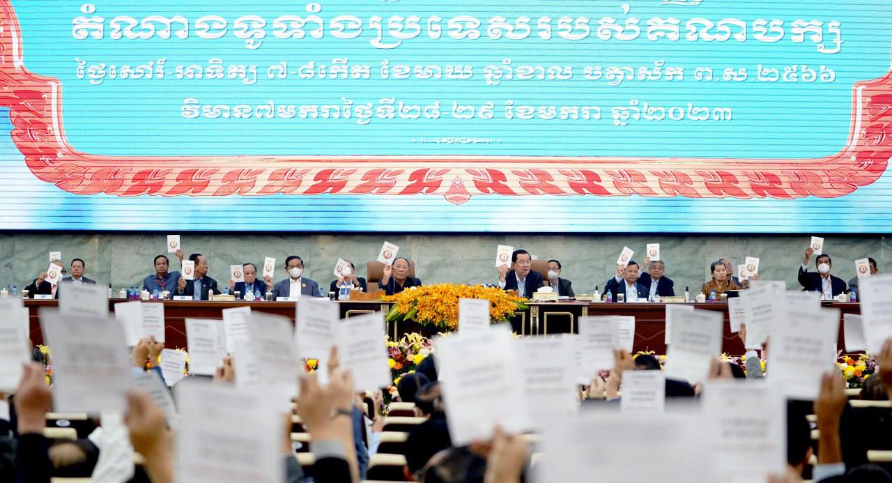 ព្រមជាមួយនេះ មហាសន្និបាត សូមអំពាវនាវ ដល់បងប្អូនជនរួមជាតិគ្រប់ទិសទី សូមគាំទ្រកម្មវិធីនយោបាយរបស់គណបក្ស និងបន្តរួមសាមគ្គីជាធ្លុងមួយ ជុំវិញរាជរដ្ឋាភិបាល ក្រោមដំបូលរដ្ឋធម្មនុញ្ញ និងក្រោមម្លប់ដ៏ត្រជាក់នៃអង្គព្រះមហាក្សត្រជាទីគោរពដ៏ខ្ពង់ខ្ពស់បំផុត ដើម្បីការពារសន្តិភាព និងសម្រេចបានសមិទ្ធផលធំៗថ្មីៗទៀតលើមាគ៌ានៃការអភិវឌ្ឍ ៕ ដោយ វណ្ណលុក