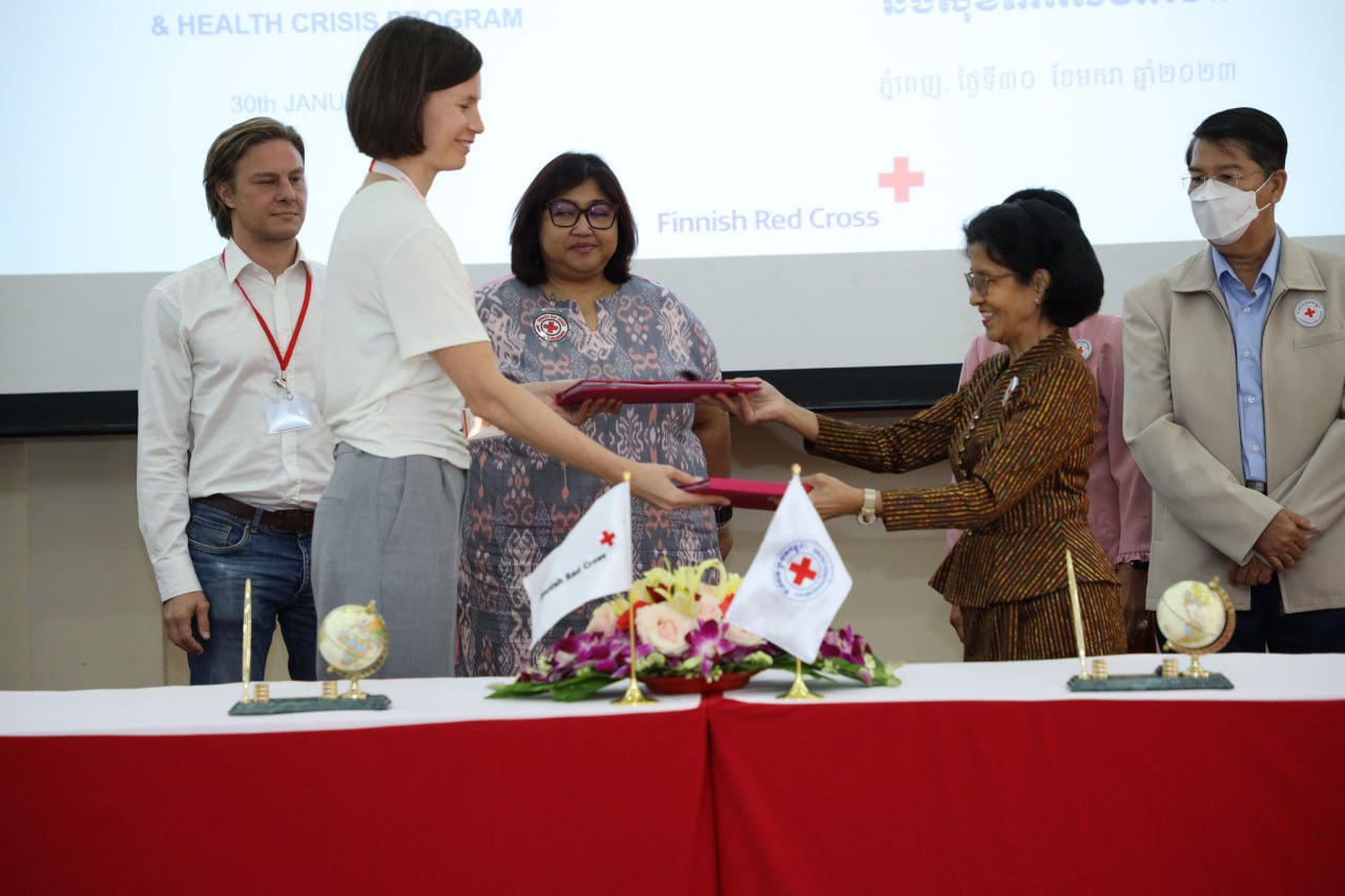 កិច្ចព្រមព្រៀងនេះ ត្រូវបានចុះហត្ថលេខា ដោយលោកជំទាវ ពុំ ចន្ទីនី អគ្គលេខាធិការ កាកបាទក្រហមកម្ពុជា និងលោកស្រី Sari Autio មន្ត្រីកាកបាទក្រហមហ្វាំងឡង់ ប្រចាំតំបន់អាស៊ី ស្តីពីកម្មវធីលើកម្ពស់សកម្មភាពមនុស្សធម៌ និងសុខភាពក្នុងសហគមន៍ កាលពីថ្ងៃទី៣០ ខែ មករា ឆ្នាំ២០២៣ នៅទីស្នាក់ការកណ្តាលរបស់កាកបាទក្រហមកម្ពុជា ។