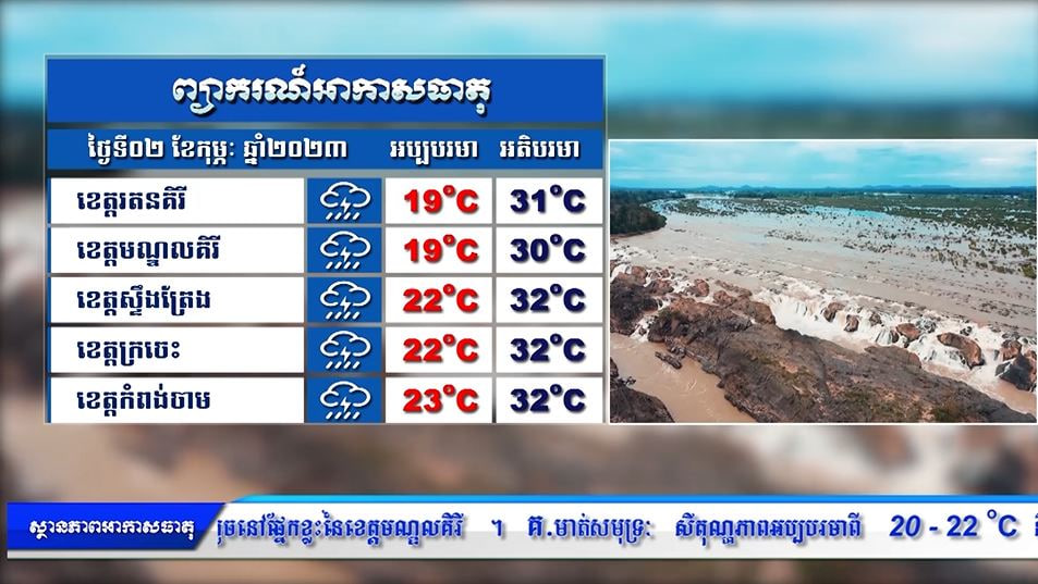 ព្យាករណ៌អាកាសធាតុ សម្រាប់ថ្ងៃទី០២ កុម្ភៈ ឆ្នាំ២០២៣ (មានវីដេអូ)