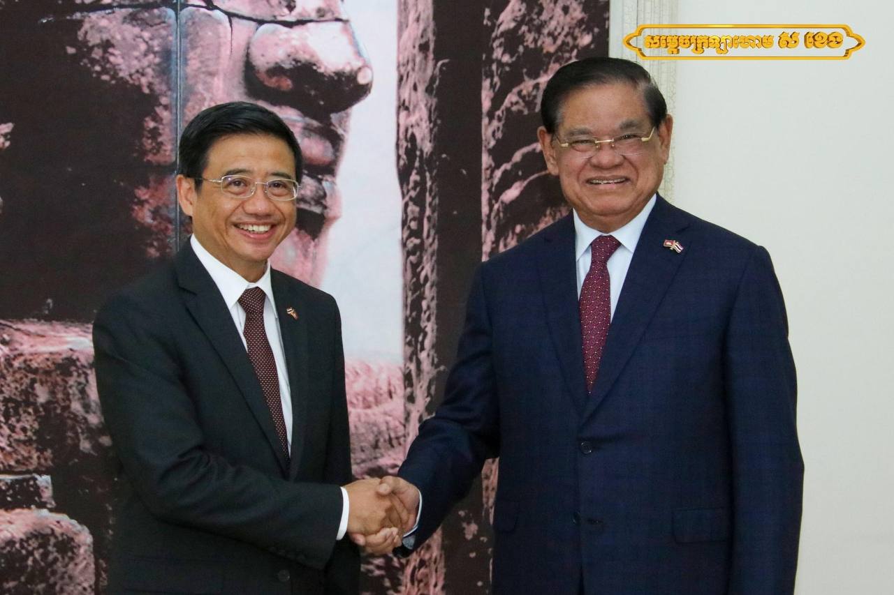 ភ្នំពេញ ៖ ក្នុងឱ្យកាសអនុញ្ញាតឱ្យចូលជួបសម្ដែងការគួរសម នៅវិមានសន្តិភាព នាថ្ងៃទី១ ខែកុម្ភៈ ឆ្នាំ២០២៣នេះ ឯកឧត្តម Chardkiat ATTHAKOR ឯកអគ្គរាជទូតថៃ ប្រចាំនៅកម្ពុជា ទើបតែងតាំងថ្មី បានសម្ដែងនូវការកោតសរសើរ និងវាយតម្លៃខ្ពស់ចំពោះការដឹកនាំរបស់សម្ដេចក្រឡាហោម ស ខេង ឧបនាយករដ្ឋមន្ត្រី រដ្ឋមន្ត្រីក្រសួងមហាផ្ទៃ ក្នុងការប្រយុទ្ធប្រឆាំងទៅនឹងឧក្រិដ្ឋកម្មឆ្លងដែន ជាពិសេសបទល្មើសឆបោកតាមប្រព័ន្ធទូរគមនាគមន៍ ដូចជាការរត់ពន្ធមនុស្សឆ្លងដែនដែលក្នុងរយៈពេលកន្លងទៅនេះបានទទួលនូវលទ្ធផលគួរឲ្យកត់សម្គាល់ ។