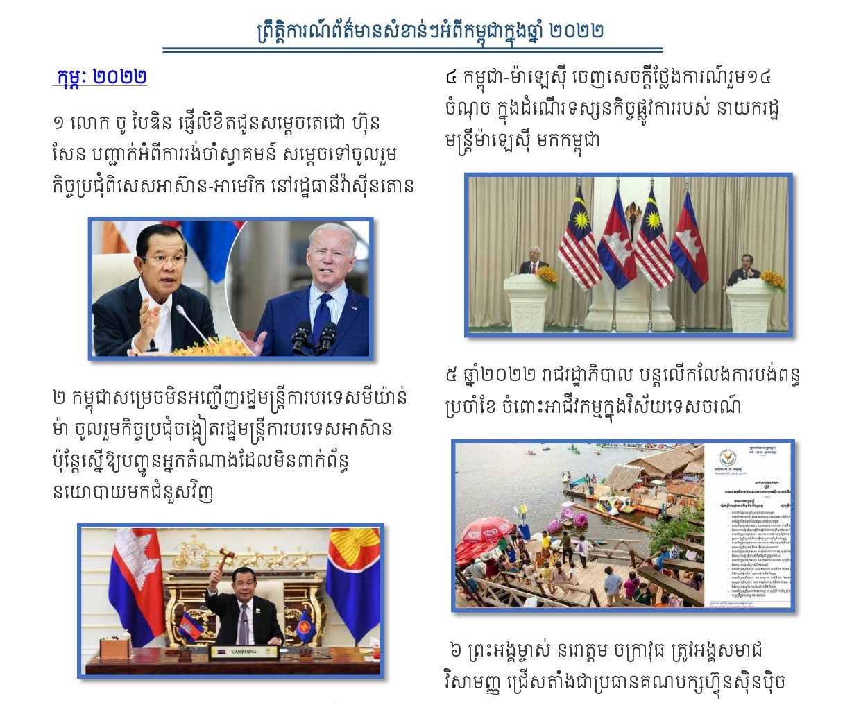 ព្រឹត្តិការណ៍ព័ត៌មានសំខាន់ៗអំពីកម្ពុជា ក្នុងឆ្នាំ២០២២One-Minuteអត្ថបទដោយ៖AMS OneMinute #ams1minute AMS OneMinuteអត្ថបទមុនអត្ថបទបន្ទាប់