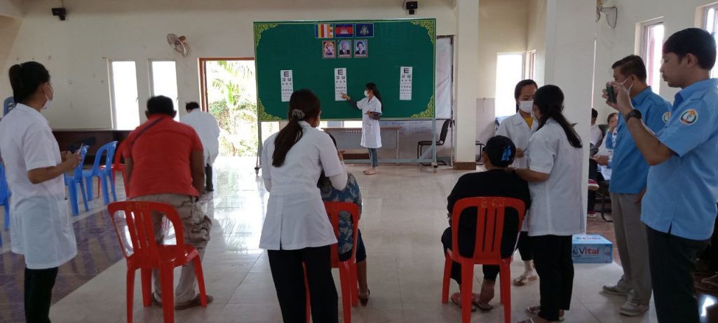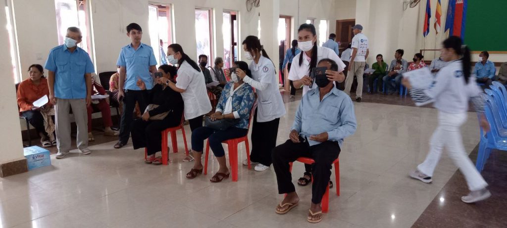 កម្មវិធីពិនិត្យសុខភាពភ្នែក ជូនបងប្អូនប្រជាពលរដ្ឋយើងនៅទីនេះ ដោយឥតគិតថ្លៃ ដូច្នេះពេលយើងពិនិត្យបឋម ជូនបងប្អូន បើមានបញ្ហា ភ្នែក តិចតួច យើងផ្តល់ថ្នាំបន្តក់ និងវ៉ែនតា អានអក្សរ ឬវ៉ែនតាខ្មៅ សម្រាប់ការពារភ្នែក។ ហើយបើពិនិត្យទៅឃើញថាមានឡើងបាយ ឬកន្ទុយថ្លែន ដល់ដំណាក់កាលបក នោះយើងសុំអញ្ជើញបងប្អូន