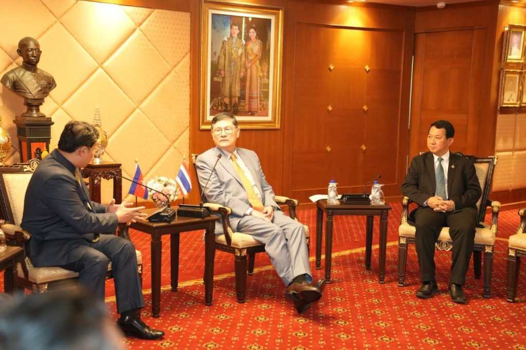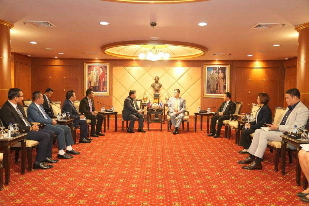 ភ្នំពេញ ៖ ឯកឧត្តម សុខ ប្រសិទ្ធិ រដ្ឋលេខាធិការ និងជាប្រធានគណៈកម្មការទទួលបន្ទុកអាហារូបករណ៍ក្រសួងព័ត៌មាន អញ្ចើញជួបសម្តែងការគួរសមជាមួយ ឯកឧត្តមសាស្ត្រាចារ្យបណ្ឌិត Anek Laothamatas រដ្ឋមន្ត្រីក្រសួងឧត្តមសិក្សា វិទ្យាសាស្ត្រ ស្រាវជ្រាវ និងនវានុវត្តន៍ និងថ្នាក់ដឹកនាំក្រសួងឧត្តមសិក្សា វិទ្យាសាស្ត្រ ស្រាវជ្រាវ និងនវានុវត្តន៍ នៃព្រះរាជាណាចក្រថៃនៅថ្ងៃសុក្រ ១៣កើត ខែមាឃ ឆ្នាំខាល ចត្វាស័ក ព.ស២៥៦៦ ត្រូវនឹងថ្ងៃទី៣ ខែកុម្ភ: ឆ្នាំ២០២៣។
