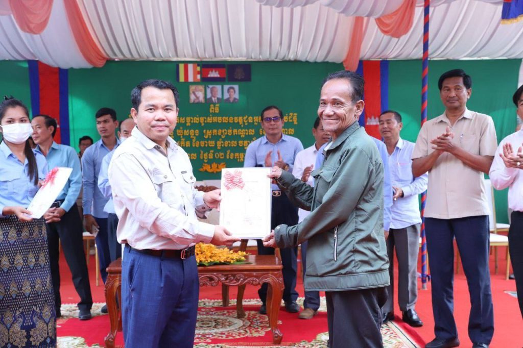ឯកឧត្តម បន្តថា មន្ទីររៀបចំដែនដី នគររូបនីយកម្មសំណង់ និងសុរិយោដីខេត្ត រួមជាមួយមន្ទីរអង្គភាពពាក់ព័ន្ធ និងអាជ្ញាធរគ្រប់លំដាប់ថ្នាក់ បានដើរតួនាទីយ៉ាងសំខាន់ ក្នុងការចេញវិញ្ញាបនបត្រសម្គាល់ម្ចាស់អចលនវត្ថុ ហើយការចែកបណ្ណកម្មសិទ្ធជូនប្រជាពលរដ្ឋនៅពេលនេះ ជាការឆ្លុះបញ្ចាំងឱ្យឃើញអំពីការយកចិត្តទុកដាក់ខ្ពស់ របស់រាជរដ្ឋាភិបាលកម្ពុជា ក្នុងការធានាកម្មសិទ្ធិដីធ្លីស្របច្បាប់ជូនប្រជាពលរដ្ឋ សំដៅលើកកម្ពស់ជីវភាព សុខុមាលភាព កាត់បន្ថយជម្លោះដីធ្លី និងការកាត់បន្ថយភាពក្រីក្រ ព្រមទាំងរួមចំណែកដល់ការពង្រឹងយុត្តិធម៌ និងស្ថេរភាពសង្គម។