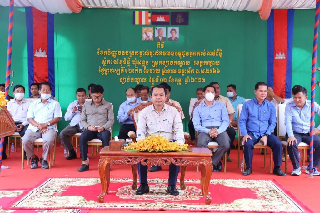 ខេត្តកណ្តាល ៖ ឯកឧត្តម គង់ សោភ័ណ្ឌ អភិបាល នៃគណៈអភិបាលខេត្តកណ្តាល បានអញ្ជើញក្នុងពិធីចែកវិញ្ញាបនបត្រសម្គាល់ម្ចាស់អចលនវត្ថុ (ប្លង់រឹង) ជូនអ្នកកាន់កាប់ដីធ្លី ស្ថិតនៅភូមិថ្មី ឃុំសន្លុង ស្រុកខ្សាច់កណ្ដាល ខេត្តកណ្ដាលនារសៀលថ្ងៃទី២ ខែកុម្ភៈ ឆ្នាំ២០២៣ ។