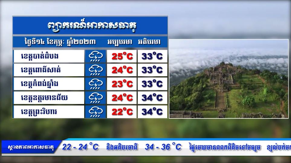 ព្យាករណ៌អាកាសធាតុ សម្រាប់ថ្ងៃទី១៤ កុម្ភៈ ឆ្នាំ២០២៣ (មានវីដេអូ)