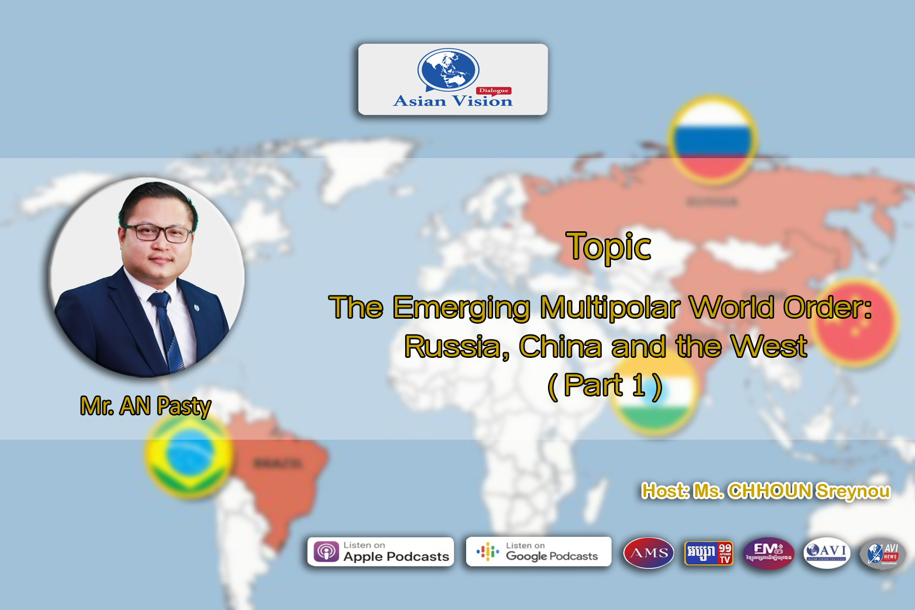 Security challenges in a modern world appear no less daunting. Indeed, the contemporary global order is changing and uncertain, which is widely believed to be more divided into a new multipolar world system. In this episode, with the first part of the interview, our guest speaker, Mr. AN Pasty, Research Fellow from the Asian Vision Institute (AVI), will share his knowledge with Asian Vision Dialogue (AVD) on the general observation of the changing world politics for the audiences to further understand the strategic competition among superpowers in multipolar world.