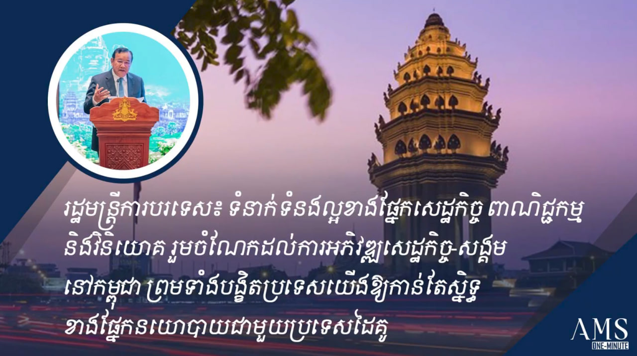 រដ្ឋមន្ត្រីការបរទេស៖ ទំនាក់ទំនងល្អខាងផ្នែកសេដ្ឋកិច្ច ពាណិជ្ជកម្ម និងវិនិយោគ រួមចំណែកដល់ការអភិវឌ្ឍសេដ្ឋកិច្ច-សង្គមនៅកម្ពុជា ព្រមទាំងបង្ខិតប្រទេសយើងឱ្យកាន់តែស្និទ្ធខាងផ្នែកនយោបាយជាមួយប្រទេសដៃគូOne-Minuteអត្ថបទដោយ៖AMS OneMinute #ams1minute AMS OneMinuteអត្ថបទមុនអត្ថបទបន្ទាប់