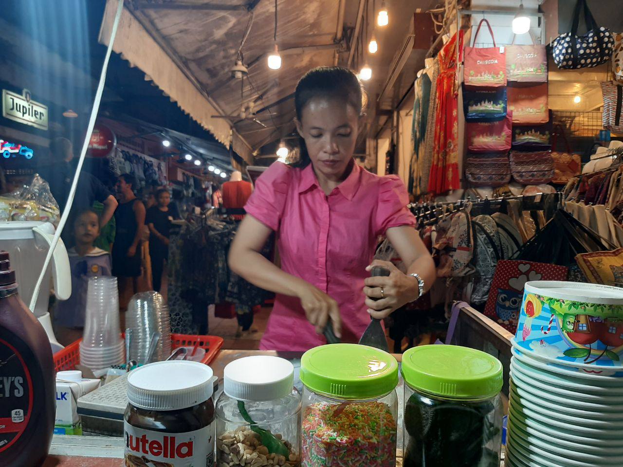 ប៉ុន្តែក្រោយពីមានការរៀបចំ និងមានការហាមប្រាម ឱ្យធ្វើចរាចរណ៍លើដងផ្លូវតំបន់ Pub Street ទើបអ្នកស្រី និងស្វាមីរៀបចំជាតូបតូចមួយ នៅជាប់នឹងដងផ្លូវដែលមានភ្ញៀវទេសចរដើរឆ្លងកាត់ខ្វែងខ្វាត់។