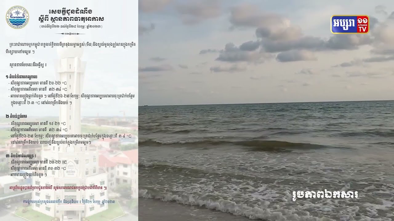 ព្យាករណ៍អាកាសធាតុ ចាប់ពីថ្ងៃទី២២ ដល់ ថ្ងៃទី២៨កុម្ភៈ (Video Inside)