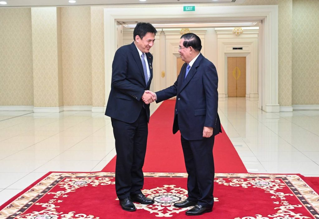 សម្តេចអគ្គមហាសេនាបតីតេជោ ហ៊ុន សែន នាយករដ្ឋមន្ត្រី នៃព្រះរាជាណាចក្រកម្ពុជា បានថ្លែងដូចនេះ ក្នុងឱកាសអនុញ្ញាតឱ្យឯកឧត្តម តាកេ ហ្ស៊ឺនសឹកិ (TAKEI Shunsuke) រដ្ឋលេខាធិការក្រសួងការបរទេសជប៉ុន និង លោកស្រី មីណាមីណូ យូកូ (MINAMINO Yuko) ម្ចាស់បទចម្រៀង «ឥន្ទធនូសម្រាប់ថ្ងៃស្អែក» ចូលជួបសម្ដែងការគួរសម និងពិភាក្សាការងារ នៅវិមានសន្តិភាព រាជធានីភ្នំពេញ នាព្រឹកថ្ងៃទី២៣ ខែកុម្ភៈ ឆ្នាំ២០២៣ ។