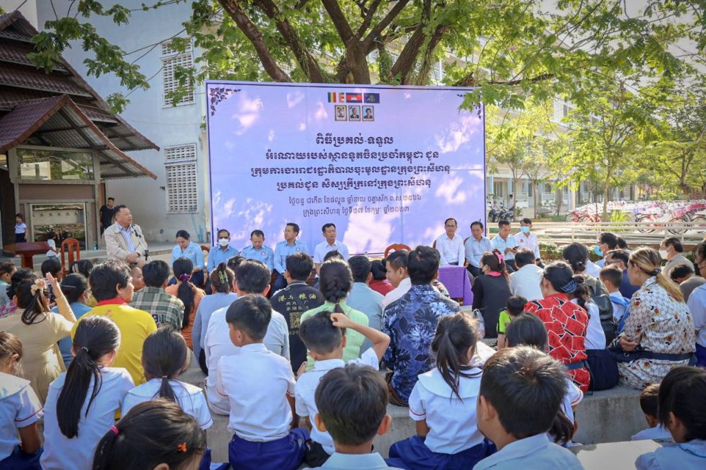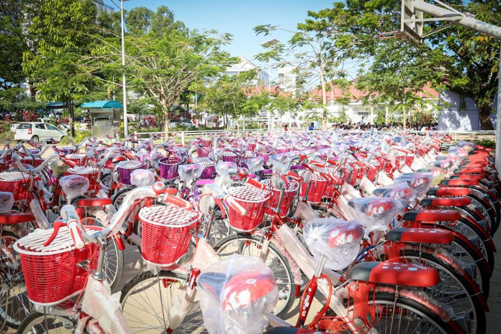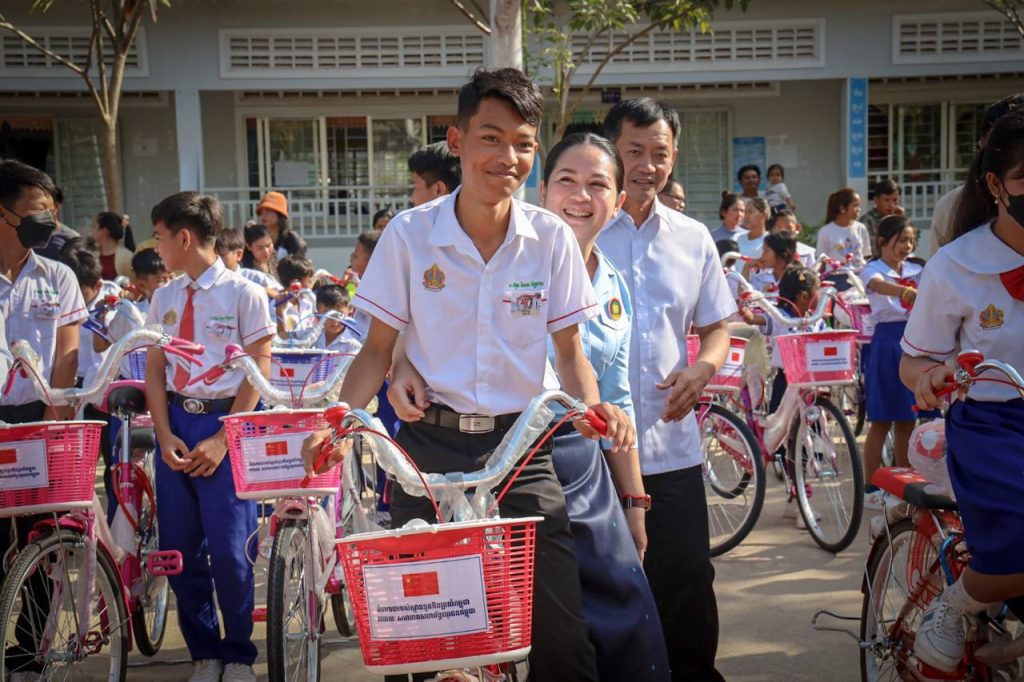 សិស្សានុសិស្សមានជីវភាពលំបាក ១០០នាក់ នៅសាលាបឋមសិក្សា និងវិទ្យាល័យ ហ៊ុន សែន មិត្តភាព នៃក្រុងព្រះសីហនុ ទទួលបានអំណោយកង់ ពីស្ថានទូតចិន