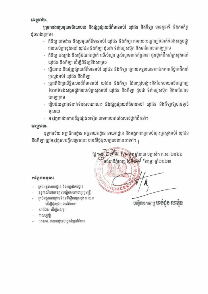ក្រសួងអប់រំបានបញ្ជាក់ថា តបតាមកម្មវត្ថុខាងលើ ខ្ញុំសូមជម្រាប ឯកឧត្តម លោកជំទាវ លោក លោកស្រី ជ្រាបថា៖ ក្នុងគោលបំណងជំរុញ ការទទួលព័ត៌មានឆាប់រហ័សស្ដីពីវិស័យអប់រំ យុវជន និងកីឡា ក្រសួងសូមលើកទឹកចិត្តបុគ្គលិកអប់រំ លោកគ្រូ អ្នកគ្រូ សិស្ស និស្សិត ភ្ជាប់ឆាណែលតេលេក្រាមរបស់ក្រសួងអប់រំ យុវជន និងកីឡា ដែលមានឈ្មោះថា “ព័ត៌មានអប់រំ យុវជន និងកីឡា -MoEYS News តាមរយៈតំណភ្ជាប់៖https://tme/moeysrews ឬស្ថាន QR Code។