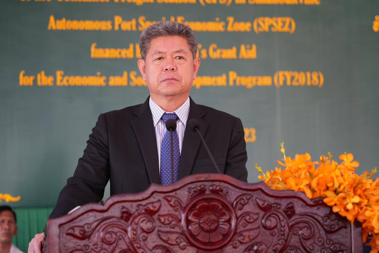 លោកលើកឡើងថា ប្រទេសជប៉ុន និងកម្ពុជាបានព្រមព្រៀងសហការ ក្នុងកម្រិតអតិបរមា ដើម្បីធ្វើឱ្យកំពង់ផែស្វយ័តព្រះសីហនុមានមុខងារ ជា កំពង់ផែ ស្នូល មិនត្រឹមតែនៅក្នុងប្រទេសកម្ពុជា ប៉ុន្តែក៏ដូចជា នៅ ក្នុងតំបន់មេគង្គទាំងមូល។ លើសពីនេះ ក៏មានសាងសង់ឃ្លំាង ផ្ទុកទំនិញរបស់ AEON ជាក្រុមហ៊ុនជប៉ុនដ៏ល្បីនៅក្នុងតំបន់សេដ្ឋកិច្ច ពិសេសកំពង់ផែស្វយ័តក្រុងព្រះសីហនុ ធ្វើឲ្យក្រុមហ៊ុនជប៉ុនវិនិយោគ មកតំបន់សេដ្ឋកិច្ចកំពង់ផែស្វយ័តក្រុងព្រះសីហនុ។