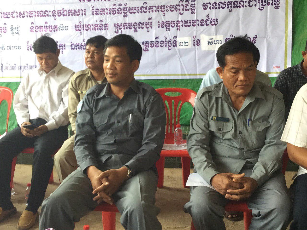 លោក ប្រាក់ ប៉ូលី បានបញ្ជាក់បន្ថែមថា កន្លងមកនៅក្នុងខេត្តបន្ទាយមានជ័យ បានធ្វើការចុះបញ្ជីដីធ្លីមានលក្ខណៈជាប្រព័ន្ធ ហើយបានចេញវិញ្ញាបនបត្រសម្គាល់ម្ចាស់អចលនវត្ថុបានចំនួន១៤២,៨៣៤ ប័ណ្ណ ដោយមានការឧបតម្ភគាំទ្រពីរាជរដ្ឋាភិបាល និងម្ចាស់ជំនួយនានា។ ដោយឡែកសម្រាប់ទិន្នន័យក្បាលដីនៅក្នុងភូមិទាំងពីរខាងលើនេះ មានចំនួន១,៨០៨ក្បាលដី។ លោកប្រធានមន្ទីរបានសំណូមពរដល់អាជ្ញាធរគ្រប់ជាន់ថ្នាក់ ស្ថាប័នពាក់ព័ន្ធ និងប្រជាពលរដ្ឋទាំងអស់ ដែលជាអ្នកកាន់កាប់ដីនៅក្នុងតំបន់វិនិច្ឆ័យ មេត្តាបង្កភាពងាយស្រួល និងសហការល្អដើម្បីអនុវត្តន៍ការចុះបញ្ជីដីធ្លីប្រព្រឹត្តទៅដោយជោគជ័យ។