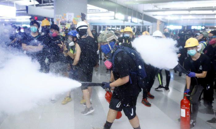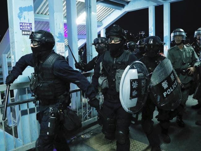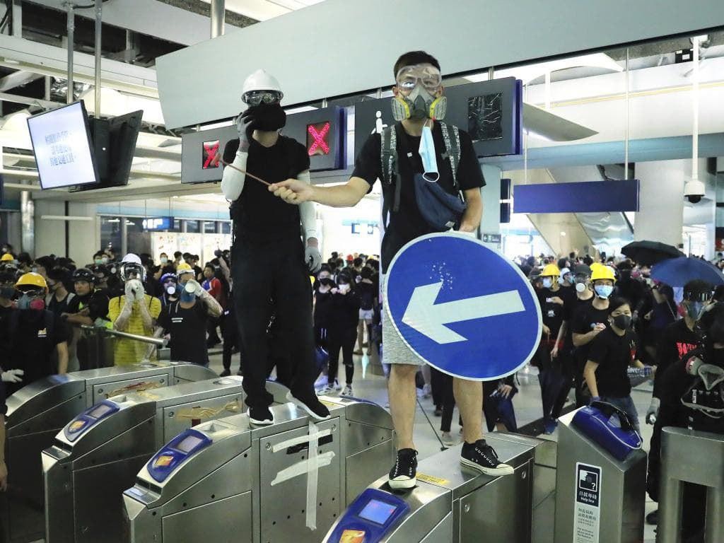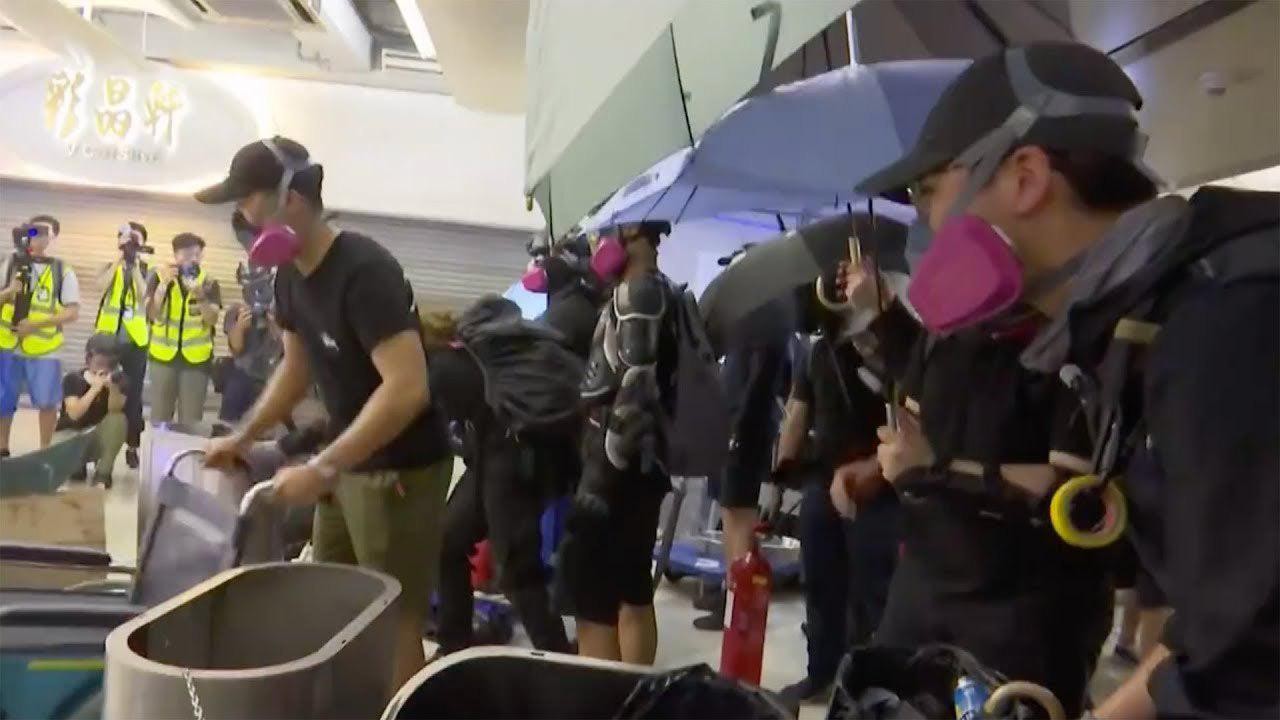 បើតាមសារព័ត៌មានចិន CGTN ក្រុមបាតុករពាក់ម៉ាស់មុខខ្លះបានប៉ះទង្គិចជាមួយប៉ូលិសក្នុងស្ថានីយរថភ្លើងក្រោមដី ដោយបាញ់បំពង់ពន្លត់អគ្គីភ័យចេញពីខាងក្នុងស្ថានីយ Yuen Long ខណៈដែលអ្នកផ្សេងទៀតបានចាក់ខ្លាញ់ឆាលើកម្រាលឥដ្ឋ ដើម្បីបញ្ឈប់ប៉ូលិសកុំឱ្យរុលទៅមុខបាន។