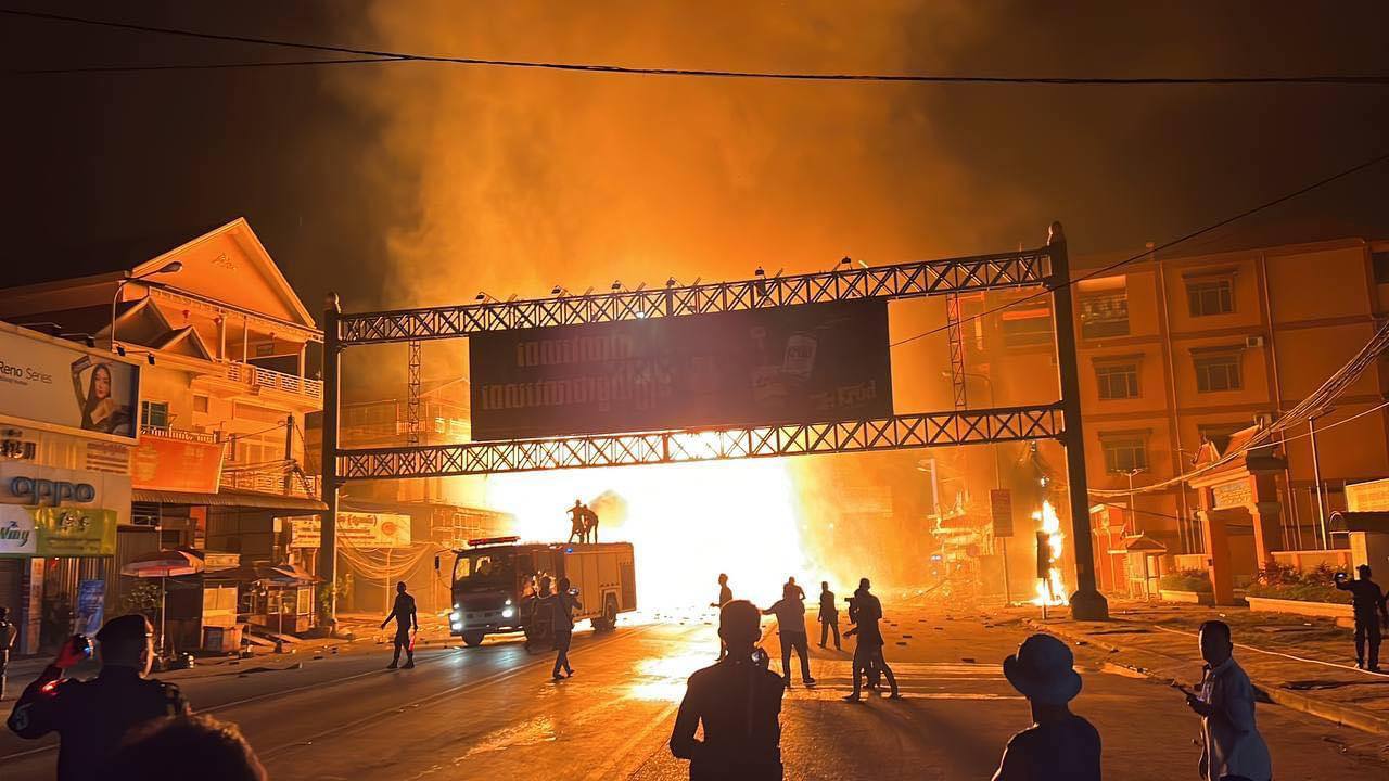 ខេត្តកណ្ដាល ៖ មានគ្រោះអគ្គិភ័យដ៏សន្ធោសន្ធៅមួយបានកេីតឡេីង បន្ទាប់ពីរថយន្តកុងតឺន័រ២គ្រឿងបុកគ្នាហេីយក្រឡាប់ទៅប៉ះរថយន្តធុនតូចដែលចតនៅក្បែរគ្នាធ្វេីឱ្យឆេះខ្ទេចទាំង៣គ្រឿង បង្កការភ្ញាក់ផ្អេីលកាលពីវេលាម៉ោង ១២និង០០នាទីថ្ងៃទី០៣ ខែមីនា ឆ្នាំ២០២៣ នៅមុខផ្សារគគីរស្ថិតក្នុងភូមិគគីរ ឃុំគគីរ ស្រុកកៀនស្វាយ ខេត្តកណ្តាល ។