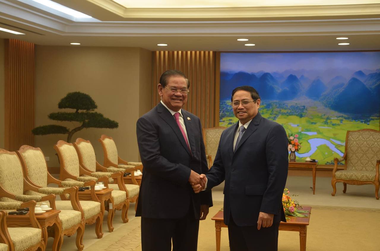 សម្ដេចក្រឡាហោម ស ខេង អញ្ជើញចូលជួបសម្ដែងការគួរសមជាមួយឯក ឧត្តម ផាម មិញជិញ នាយករដ្ឋមន្ត្រីវៀតណាម