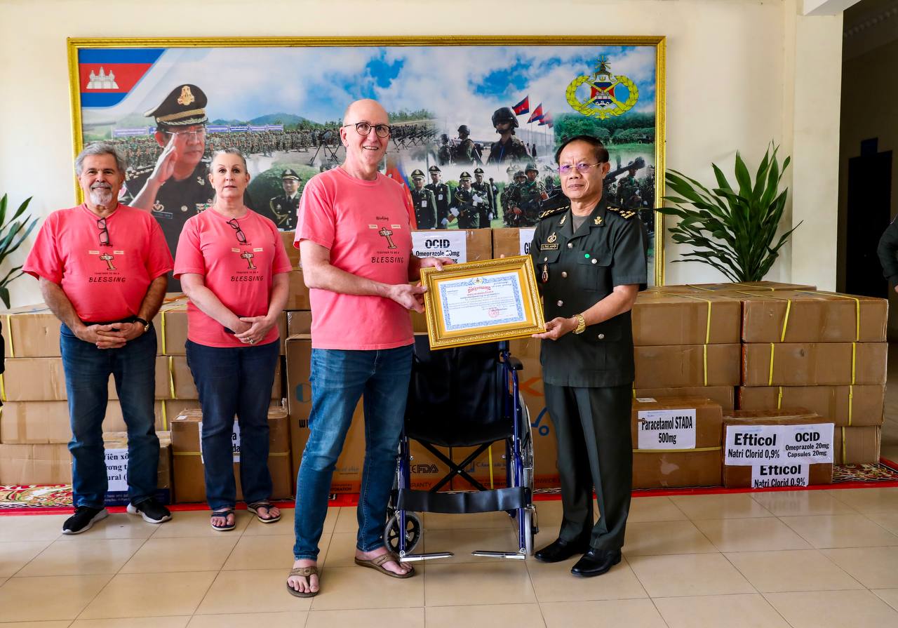 ភ្នំពេញ៖ នៅព្រឹកថ្ងៃទី០៥ ខែមីនា ឆ្នាំ២០២៣នេះ ឯកឧត្តម REMP LAWRENCE ALAN បាននាំយកទេះរុញជនពិការពិភពលោក ចំនួន ១៦០រទេះ ថ្នាំពេទ្យ និងវ៉ែនតា អំណោយរបស់សមាគមរទេះរុញជនពិការពិភពលោក បរិច្ចាកជូនបញ្ជាការដ្ឋានកងទ័ពជើងគោក ដើម្បីជួយសម្រួលដល់យោធិនពិការរបស់បញ្ជាការដ្ឋានដែលធ្លាក់ខ្លួនពិការ ។