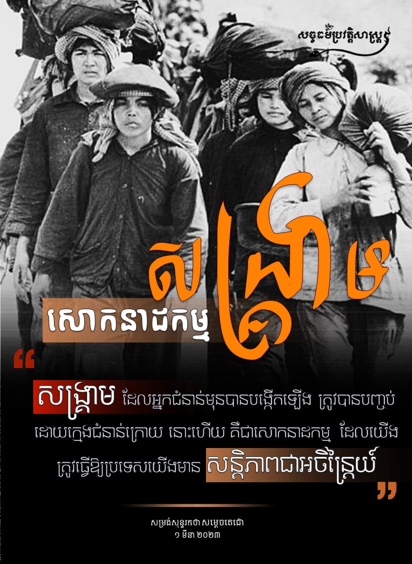 សង្គ្រាមបានបង្កវិនាសកម្មយ៉ាងធំធេងដល់កម្ពុជា ដោយបានបំផ្លាញនូវជីវិតរស់នៅរបស់មនុស្សសត្វ បំផ្លាញរាល់ហេដ្ឋារចនាសម្ព័ន្ធ សេដ្ឋកិច្ច វប្បធម៌ ក៏ដូចជាការអភិវឌ្ឍគ្រប់បែបយ៉ាង។ ហេតុនេះហើយទើបការរួបរួមរក្សាការពារនូវសន្តិភាពដែលកម្ពុជាកំពុងតែមានសព្វថ្ងៃនេះ ឱ្យបានគង់វង្សជាដាច់ខាត គឺជាកាតព្វកិច្ចចាំបាច់បំផុតរបស់យើងជាប្រជាជនកម្ពុជា ពីព្រោះ សន្តិភាពបាននាំមកនូវការអភិវឌ្ឍ និងរីកចម្រើន។