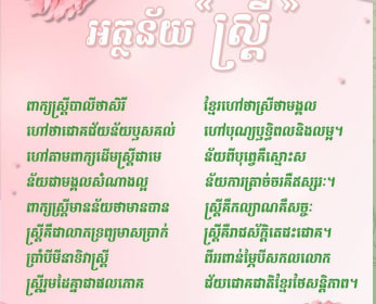 អត្ថន័យ “ស្ត្រី” និពន្ធដោយលោក សុខ ធម្មកាសីOne-Minuteអត្ថបទដោយ៖AMS OneMinute 📷 UYFCPP #ams1minute AMS OneMinuteអត្ថបទមុនអត្ថបទបន្ទាប់