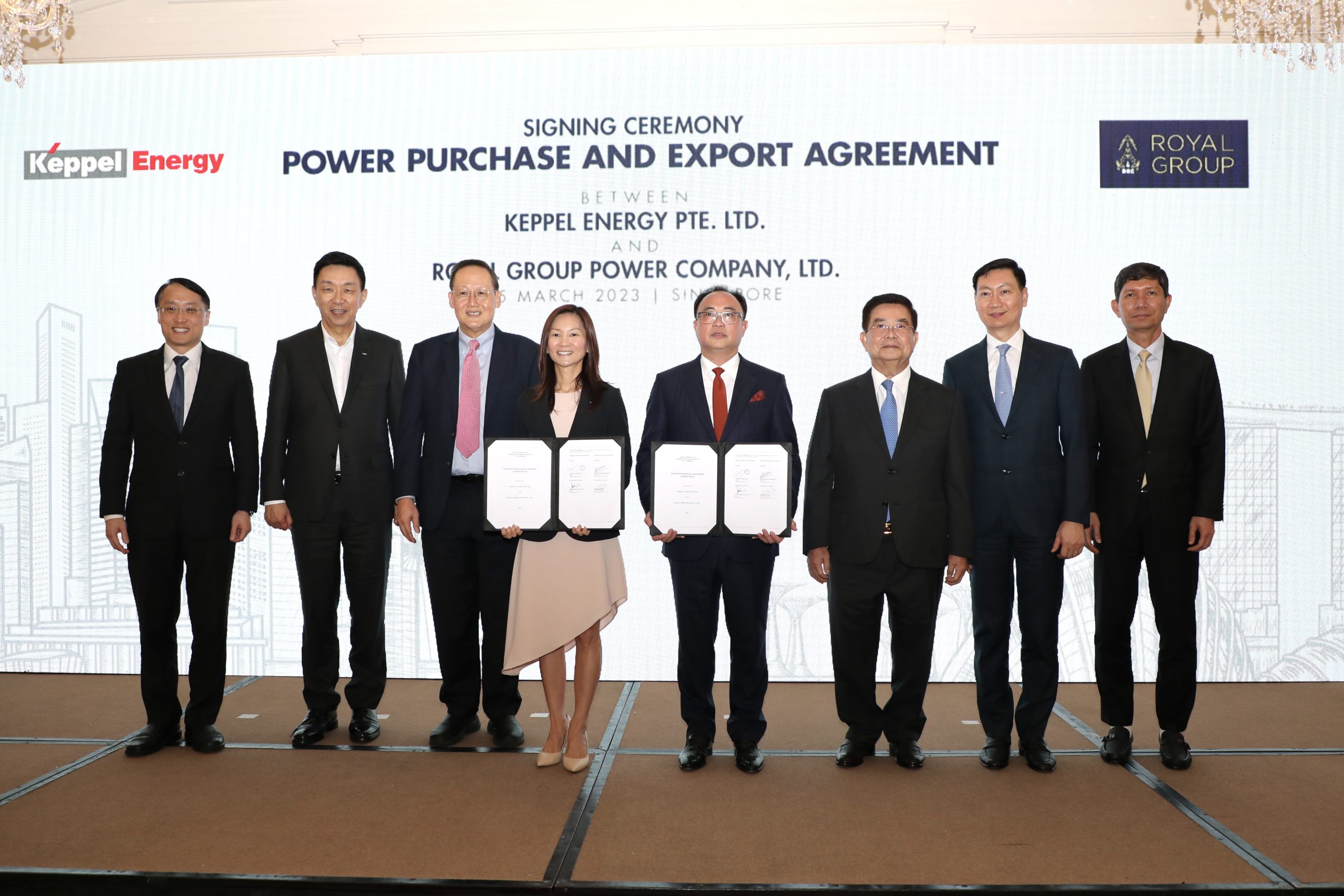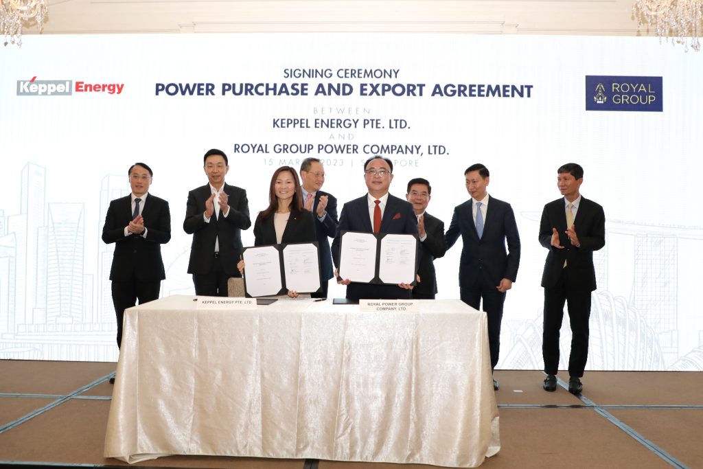 ក្រុមហ៊ុនរ៉ូយ៉ាល់គ្រុប (Royal Group) របស់អ្នកឧកញ៉ា គិត ម៉េង បានចុះកិច្ចព្រមព្រៀងជាមួយក្រុមហ៊ុនថាមពលដ៏ធំរបស់សិង្ហបុរី គឺ ក្រុមហ៊ុន Keppel Energy Pte Ltd (KE) ដើម្បីលក់ និងនាំចេញថាមពលអគ្គិសនីកកើតឡើងវិញពីប្រទេសកម្ពុជាទៅកាន់សាធារណរដ្ឋសិង្ហបុរី។ ការចុះហត្ថលេខារវាងក្រុមហ៊ុនធំៗ នៃប្រទេសទាំងពីរ ធ្វើឡើងនារសៀលថ្ងៃទី១៥ ខែមីនា ឆ្នាំ២០២៣ នៅប្រទេសសិង្ហបុរី ក្រោមអធិបតីភាព ឯកឧត្តម ស៊ុយ សែម រដ្ឋមន្រ្តីក្រសួងរ៉ែ និងថាមពល តំណាងដ៏ខ្ពង់ខ្ពស់សម្តេចតេជោ ហ៊ុន សែន នាយករដ្ឋមន្រ្តីកម្ពុជា និង ឯកឧត្តម តាន់ ស៊ីឡេង (Tan see leng) រដ្ឋមន្រ្តីទីពីរ នៃក្រសួងពាណិជ្ជកម្ម និងឧស្សាហកម្មសិង្ហបុរី ។