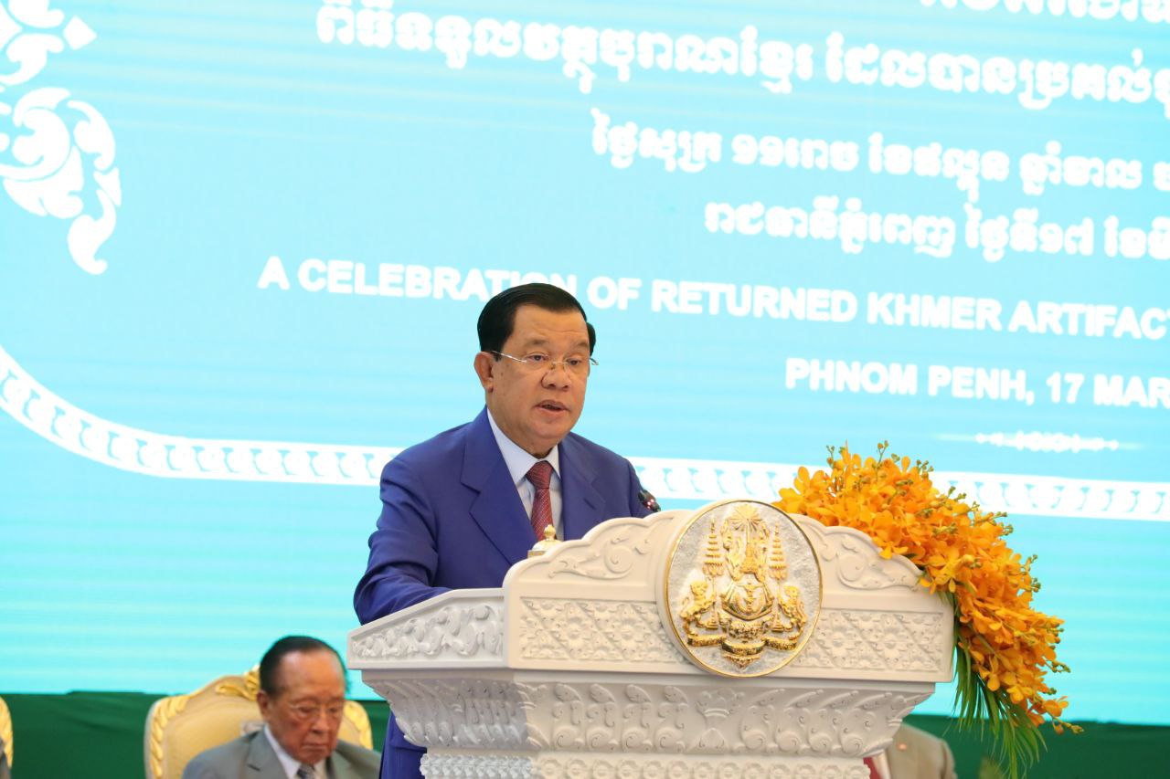 សម្តេចបញ្ជាក់ថា ពិធីប្រគល់វត្ថុបុរាណនៅថ្ងៃនេះ គឺជាពិធីដ៏ឧដុង្គឧត្តម ពោលមិនមែនសម្រាប់កម្ពុជា ដែលជាម្ចាស់វត្ថុបុរាណនោះទេ ប៉ុន្តែឆ្លុះបញ្ជាំងឱ្យឃើញពីសារសំខាន់នៃកិច្ចសហប្រតិបត្តិការល្អជាមួយប្រទេសនានា និងការខិតខំប្រឹងប្រែងរបស់សហគមន៍អន្តរជាតិ នៅក្នុងយុទ្ធនាការសកលប្រយុទ្ធទប់ស្កាត់អំពើចោរកម្ម និងការចរាចរជួញដូរខុសច្បាប់នៃសម្បត្តិវប្បធម៌។