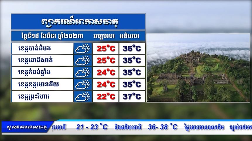 ព្យាករណ៍អាកាសធាតុ សម្រាប់ថ្ងៃទី១៨ មីនា ២០២៣ (មានវីដេអូ)