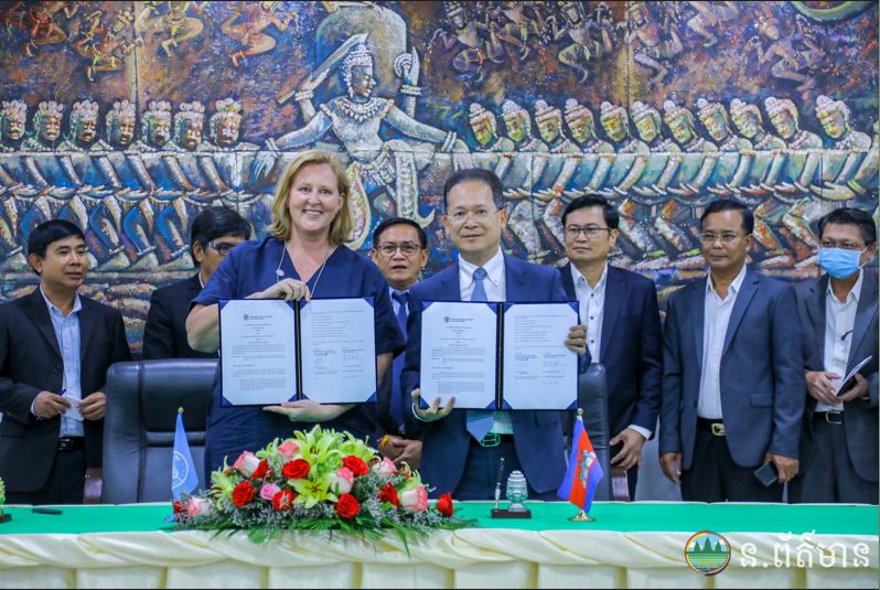 គួរបញ្ជាក់ថាពិធីនេះបានប្រព្រឹត្តិទៅនារសៀលថ្ងៃទី១៧ ខែមីនា ឆ្នាំ២០២៣ នាទីស្តីការក្រសួងបរិស្ថាន។ ឯកឧត្តម អ៊ាង សុផល្លែត រដ្ឋលេខាធិការក្រសួងបរិស្ថាន និងជាជនបង្គោលបម្រុងកម្ពុជាសម្រាប់មូលនិធិអាកាសធាតុ បានអញ្ជើញចុះហត្ថលេខាលើកិច្ចព្រមព្រៀង គម្រោង «ភាពជាដៃគូរវាងរដ្ឋ ឯកជន និងសហគមន៍ ដើម្បីលើកកម្ពស់កសិកម្មភាតរភាពបរិស្ថាន និងជីវភាពដែលធន់នឹងអាកាសធាតុរបស់ប្រជាសហគមន៍នៅភាគខាងជើងនៃបឹងទន្លសាប» ហៅកាត់ថា PEARL ជាមួយលោកស្រី Rebekah Bell នាយិកាអង្គការស្បៀង និងកសិកម្មនៃសហប្រជាជាតិ (FAO) ប្រចាំកម្ពុជា។