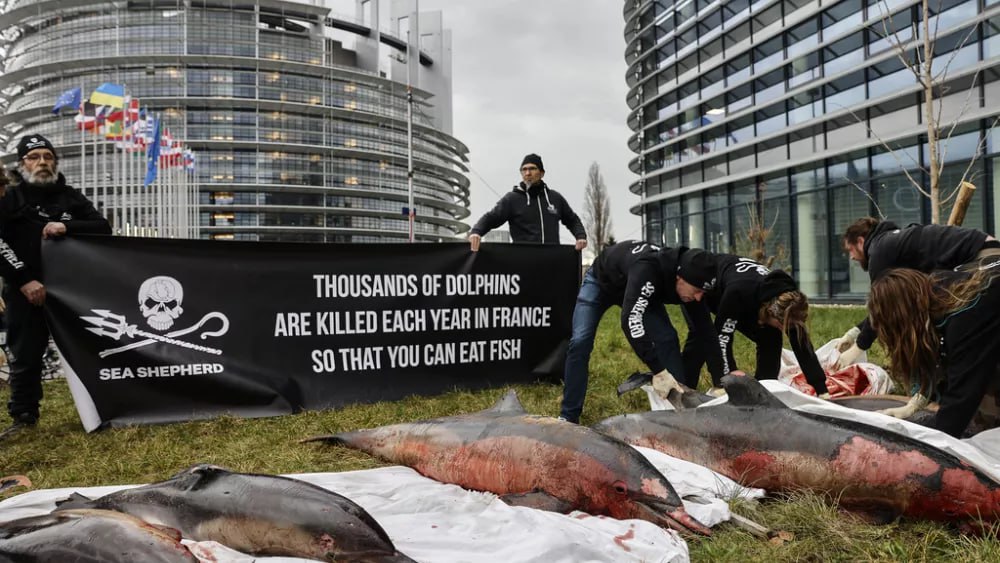 កាលពីថ្ងៃអង្គារ សប្តាហ៍នេះ សកម្មជនមកពីអង្គការបរិស្ថាន ស៊ី សិបភឺត (Sea Shepherd) បានតម្កល់សាកសពសត្វដូហ្វីន បង្ហូរឈាមនៅមុខសភាអឺរ៉ុប ក្នុងទីក្រុង ស្ត្រាស់បឺគ (Strasbourg) ក្នុងក្តីសង្ឃឹមថា សហគមន៍អឺរ៉ុប នឹងបង្ខំប្រទេសបារាំងឱ្យបញ្ឈប់បច្ចេកទេសនេសាទ ដែលមិនគួរជ្រើសរើស៕ ប្រភពពី AFP ប្រែសម្រួលដោយ៖ សារ៉ាត
