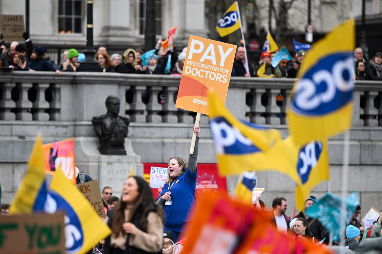 គ្រូបង្រៀន វេជ្ជបណ្ឌិត និងមន្ត្រីរាជការដែលធ្វើកូដកម្មរាប់ម៉ឺននាក់បានចូលរួមក្នុងការដើរដង្ហែរឆ្លងកាត់ទីក្រុងឡុងដ៍ នៅថ្ងៃតែមួយ ដែលរាជរដ្ឋាភិបាលប្រកាសថវិកាចុងក្រោយរបស់ខ្លួន ដែលក្នុងនោះ មិនមានការផ្តល់ជូនថ្មីលើប្រាក់បៀវត្សរ៍ ក្នុងវិស័យសាធារណៈ ដែលត្រូវបានប្រកាសនោះទេ។